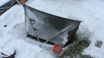 Welche Plane oder Matte legst du untern HM aus? Meine BW Matte hat sich auf Schnee als Schlitten erwiesen ... musste sie einfangen mit samt meinen Sachen drauf