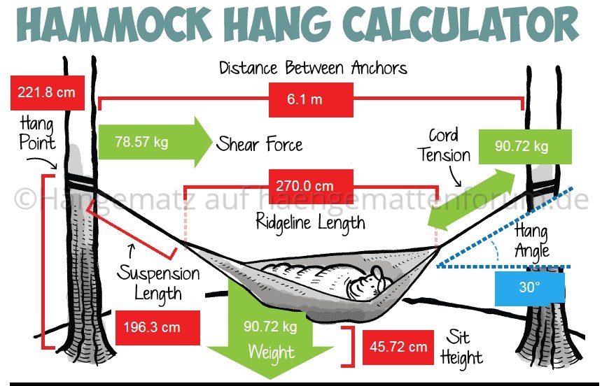 Mir ist schon klar, dass dies nur ein Näherungswert ist, da z. B. die benutze Länge der Treehugger i .d. R. kurzer ist. Aber ich schleppe lieber 2 - 3 m von der Schnur zuviel mit, als dass mir im Extremfall dann vielleicht 3 cm fehlen um das Tarp zu spannen.