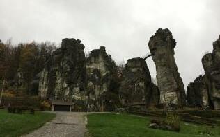 Die Externsteine sind wirklich sehenswert und wir erkundeten, soweit möglich, alle Stufen und Plattformen. Der Aufstieg zur Treppe und Felsenkammer war aber leider versperrt. Ein Blick auf die weiter unten angebrachte Tafel brachte dann die Erkenntnis: kostet Eintritt und erst ab 10 Uhr.
