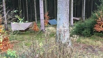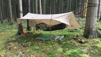 Im angrenzenden Fichtenwald fand jeder einen schönen Platz und es wurden die Hängematten aufgebaut. Warbonnet Blackbird XLC, Warbonnet Ridgerunner, Dendronaut Koma, Warbonnet Superfly, Warbonnet Thunderfly, Wookie, 2xLynx. Knaller!