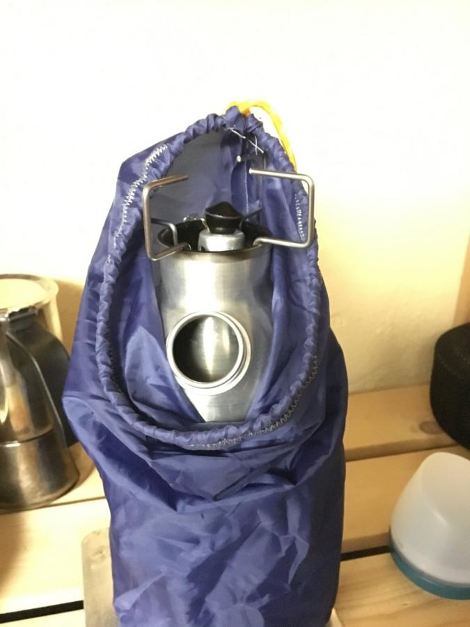 Heute habe ich noch einen Sack für meine Petromax Fk1 und den Sayer Wasserfilter genäht.