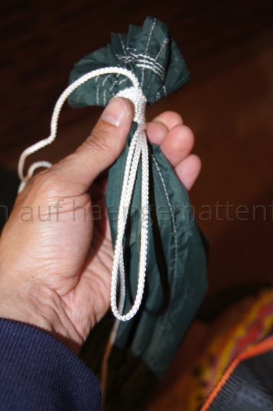 Ärgerlich bei kurzen Spannweiten - Die überschüssige Schnur einer Whoopie-Sling
