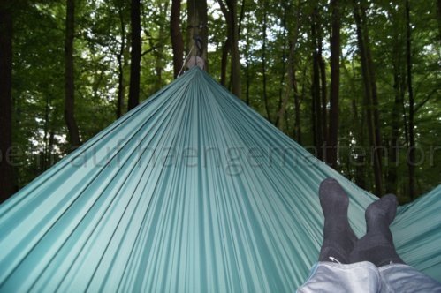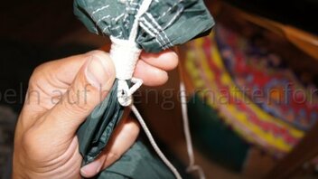 Dann die Whoopie verlängern um am Kopfende den richtigen Hängewinkel zu finden......auch nicht ganz ohne fummeln.....