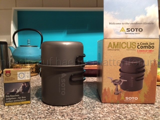 Der ist leicht, brennt auch bei Wind noch ganz gut und die Töpfe halten auch ein kleines Holzfeuerchen aus - soweit die Anpreisungen des Fachberaters.