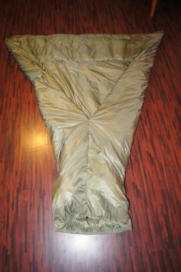 Der Synthetic Top-Quilt, ein ganz gewöhnlicher TQ mit Gummizug & Verschluss am Kragen, aus 200er APEX in 55g Nylontaft.