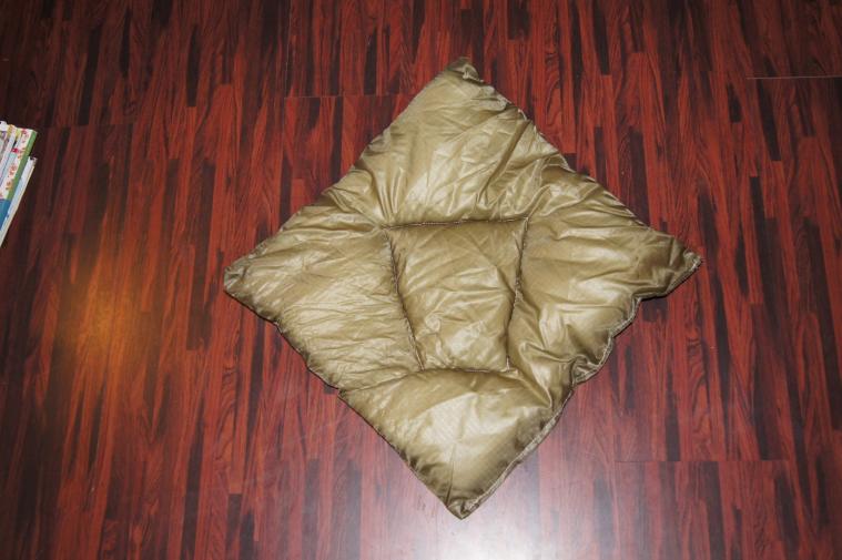 Nach Vornahme der kleinen Korrekturen ist es jetzt allerdings ein Prima Quilt! Er hält warm (kurze Tests im Garten bei 3°C waren kein Problem), rutscht hin wo er soll und ist easy in der Handhabung. Auch mit dem Wissen um die knappe Länge konnte ich mich entspannen, ohne daß mir der Gedanke kam "Jetzt zieht es ja doch hier oben...." Gut genug um fester Bestandteil meines Equipments zu werden! Versuch gelungen.