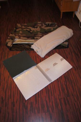 Aus einer Iso-Matte, Zeltboden, Camouflage-Canvas (2Lagen-Laminat) und Thermo-Fleece wurde dann folgendes: