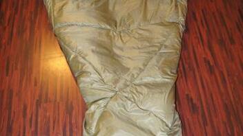 zuerst kommt die Iso-Matte in den Bag - dann wird das Fleece-Futter eingknöpft.......zuerst der Druckknopf oben in der Mitte......