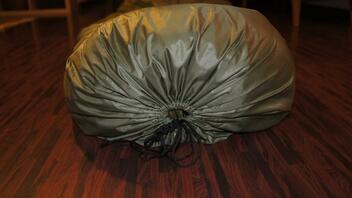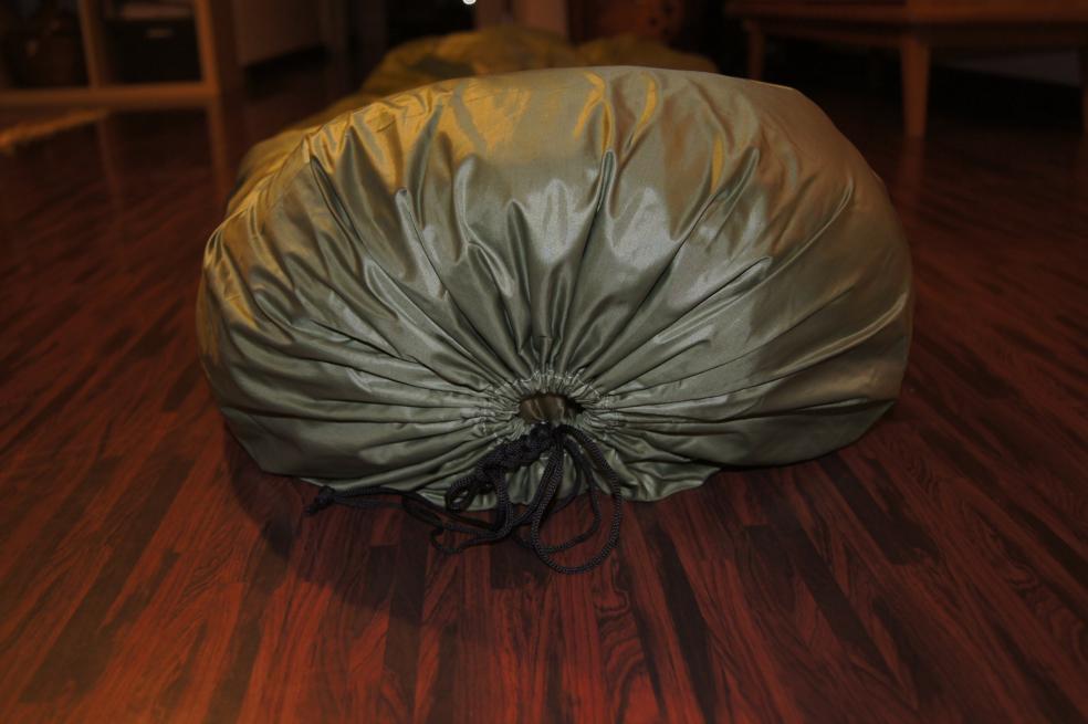 Die Klemmräder an den Ecken habe ich noch nicht getestet - die Schnur dient auch zur Befestigung beim Einsatz als Tarp.