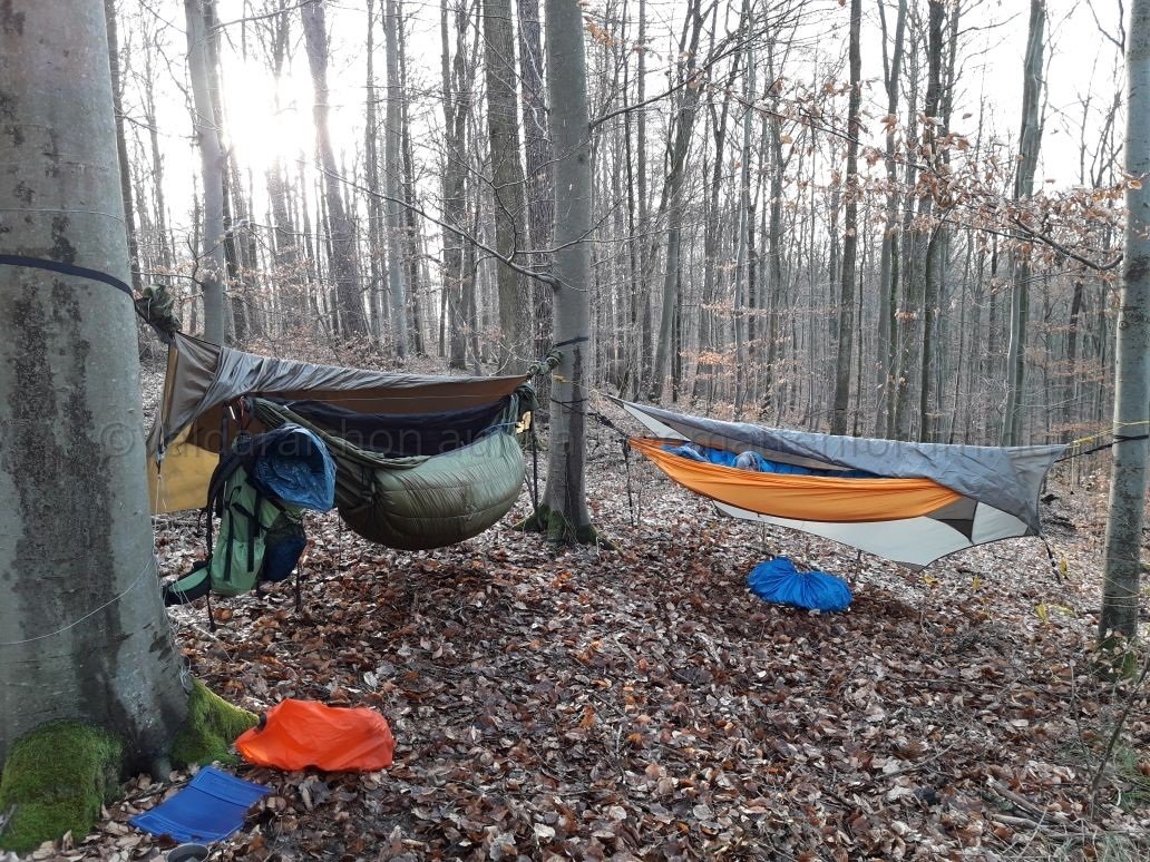 Was ich ändern will nach dieser ersten Nacht? Ich werde mir einen Wookie (3-Season) zulegen und ich würde gerne meine Hängemattenaufhängung von dem Continious Loops lösen können (einfach und schnell). Dann muss ich die nassen Gurte nicht zur Matte packen. Das geht leider mit den Buckles von Warbonnet nicht (soweit ich weiß).Bald ist auch die 2. Etappe auf dem HW5 geplant.
