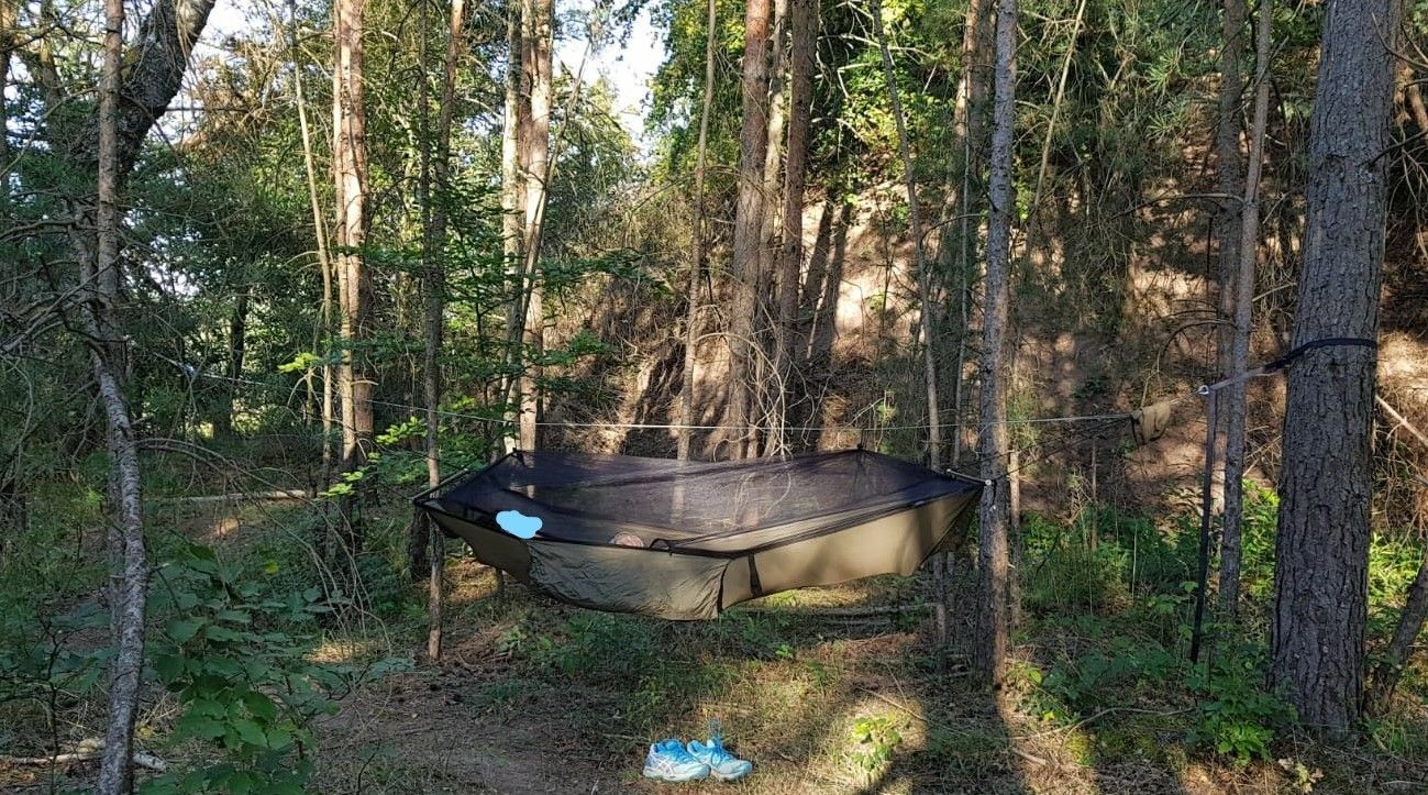 Was meiner Meinung nach zusätzlich Druck von den Schultern nimmt ist, wenn die Stange am Kopfende in die Hängematte integriert ist. In diesem Fall ist der breiteste Punkt der Hängematte näher an den Schultern (um genau zu sein auf Augenhöhe). Ich selbst kann mich nicht damit anfreunden, mit einer Stange auf Augenhöhe zu schlafen, allerdings wollte ich es der Vollständigkeit halber gesagt haben. Ein Beispiel hierfür wäre die Grizz Bridge Ariel, die ich auch schon nachgenäht habe.
