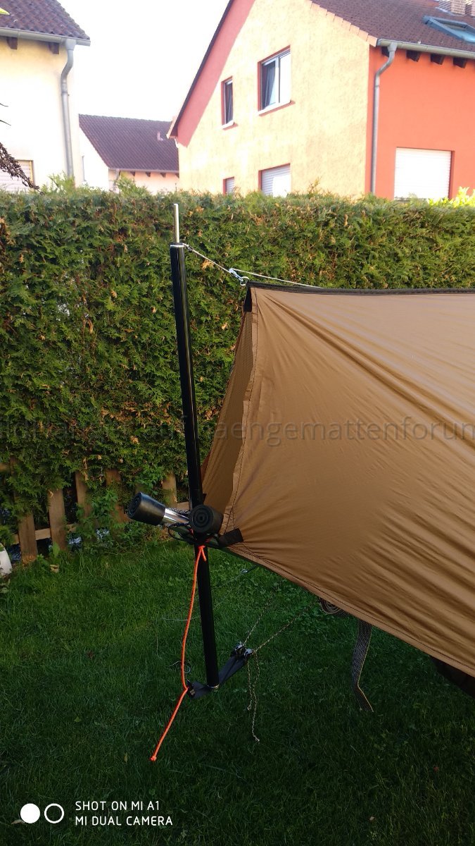 Der Übernachtungsplatz war dabei das Erste Mal ein Campingplatz. Nach einer kurzen Suche fand ich am Rand des Geländes zwei Bäume die leider ein bisschen zu nah aneinander standen.
