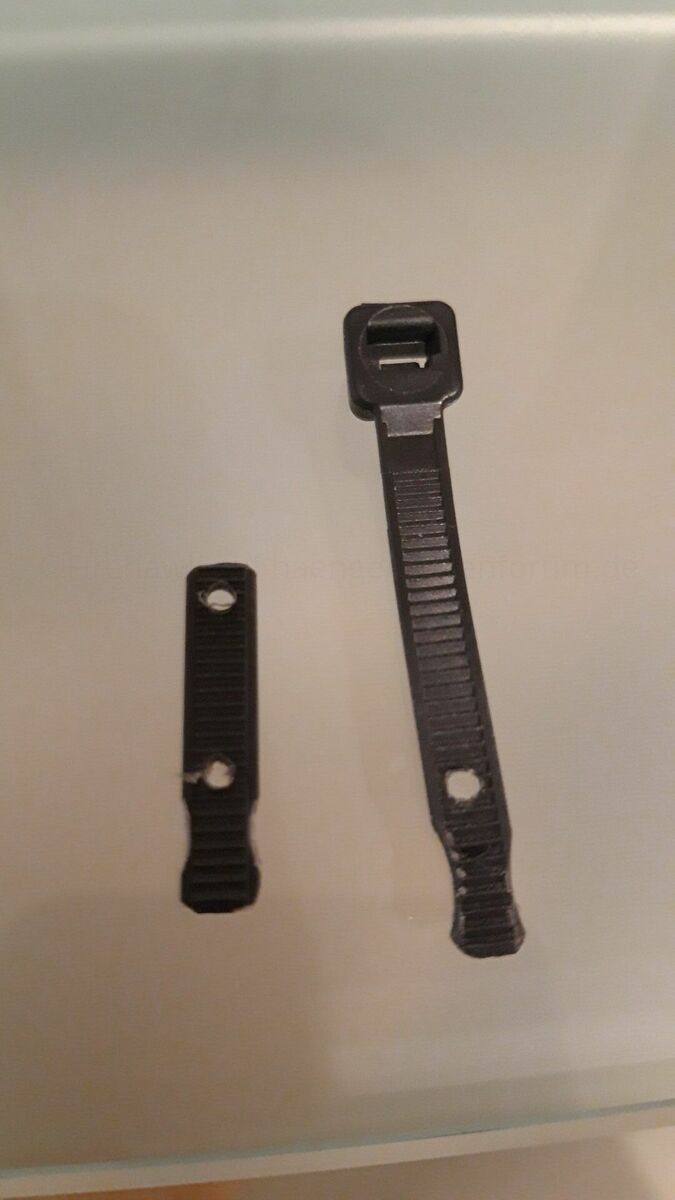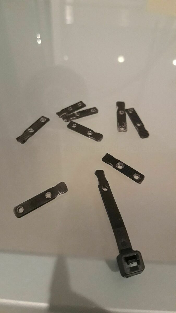 Vielleicht wiederhole ich das ganze mit breiteren Kabelbindern, oder kaufe mir direkt die Originale aus Alu.