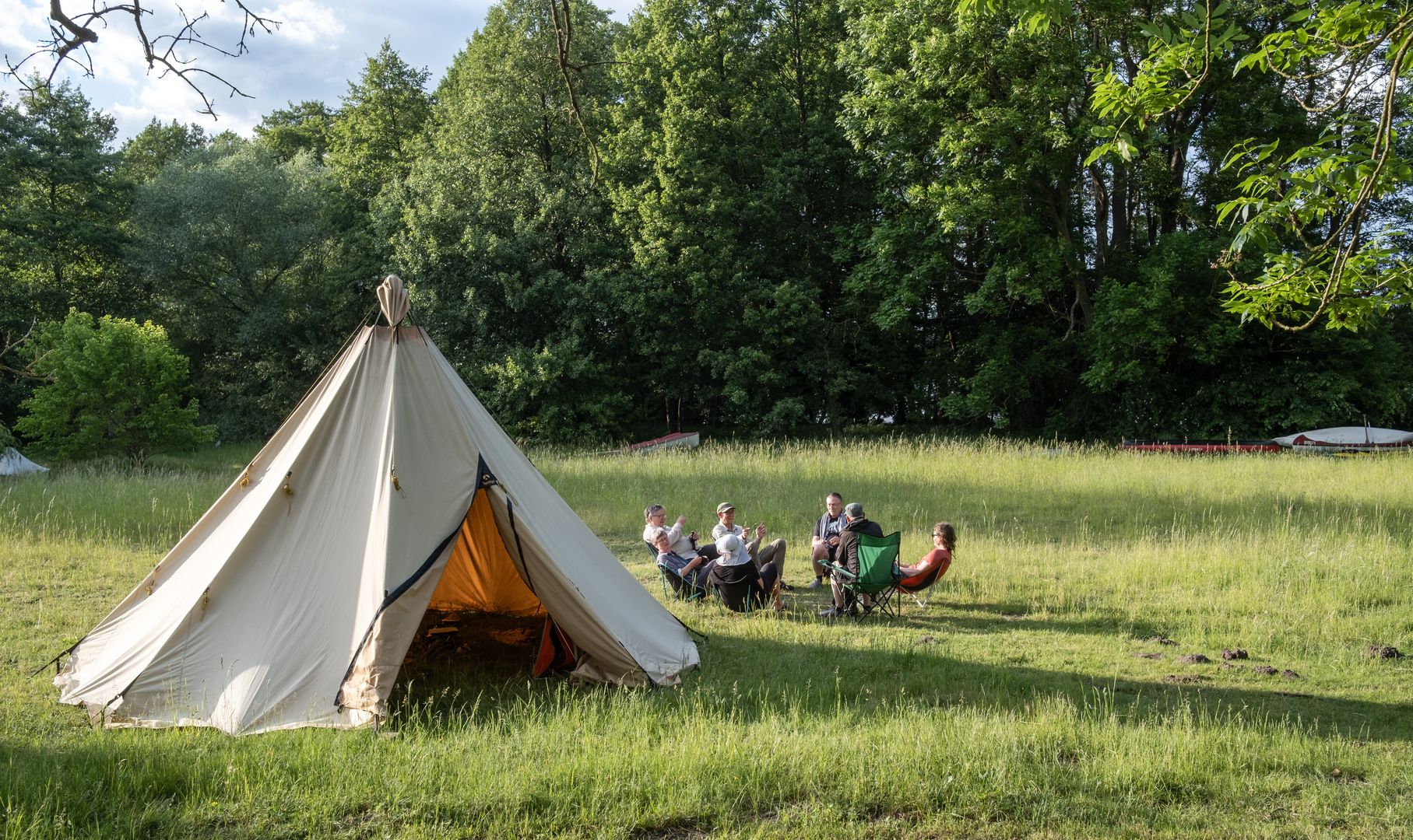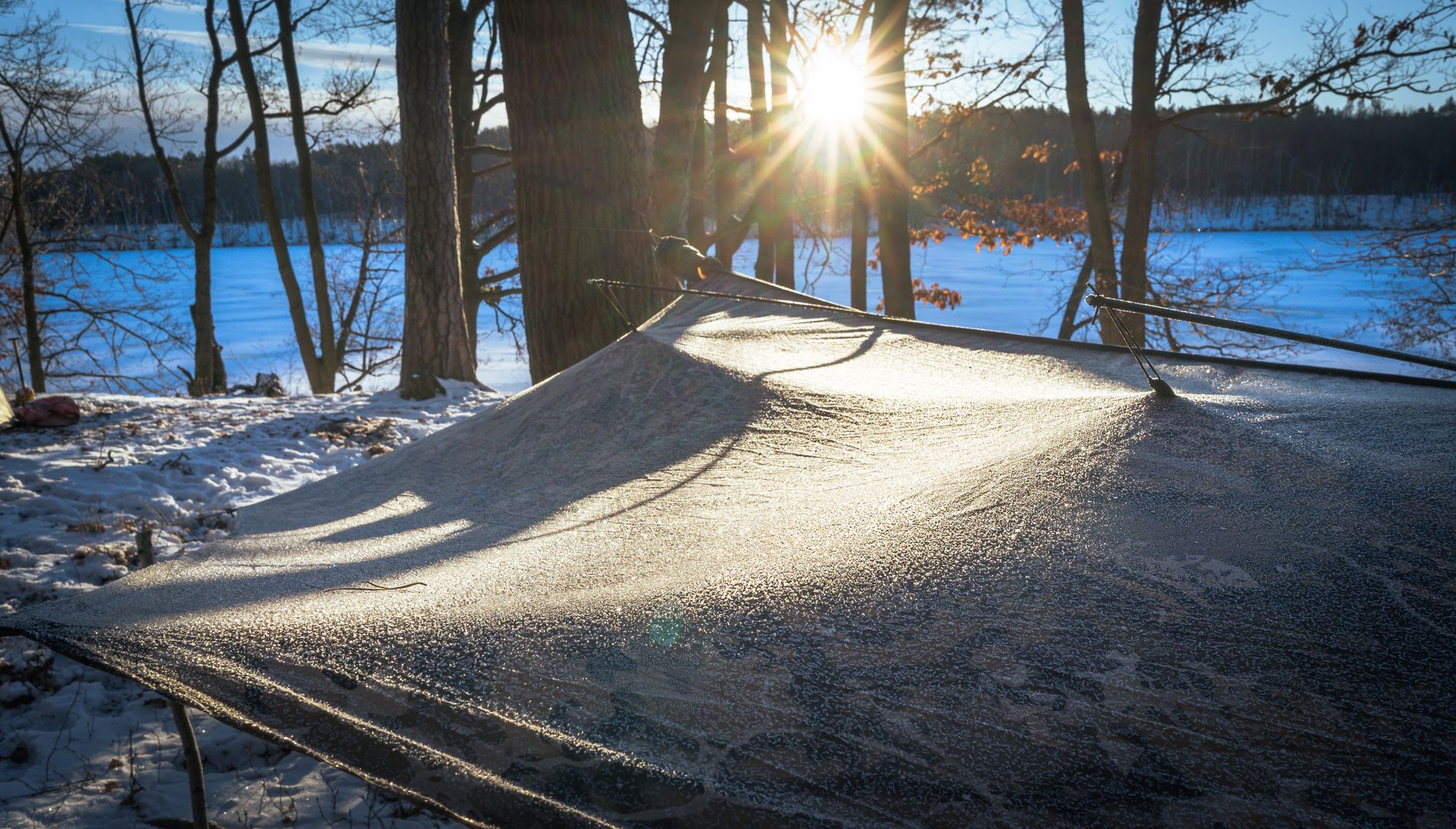 Das Zelt ist frei stehend, Ofenrohr Ausgang ist in der Mitte und es ist noch deutlich "wärmer" ( heißer) bei weniger Holz verbrauch.