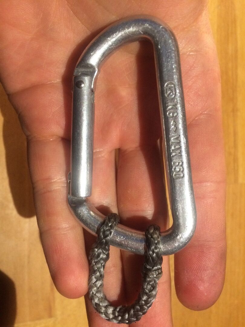 Bis jetzt habe ich die HM-Enden immer mit einem Dogbone bzw. CL gerafft und mit einem Karabiner aufgehängt.