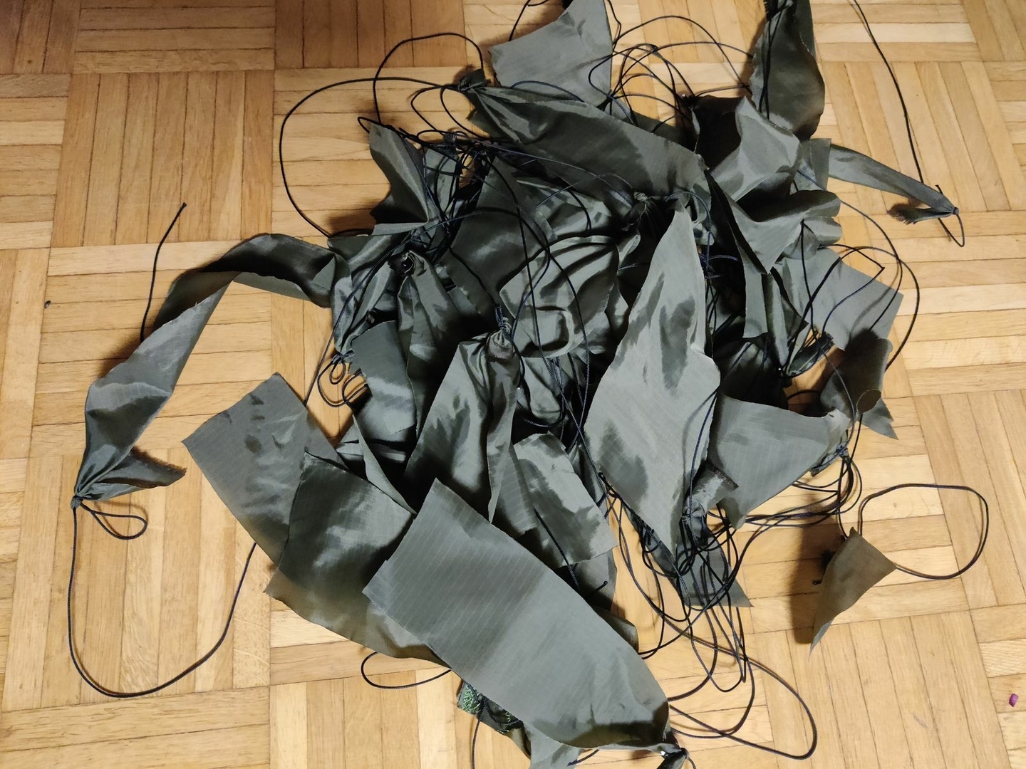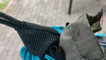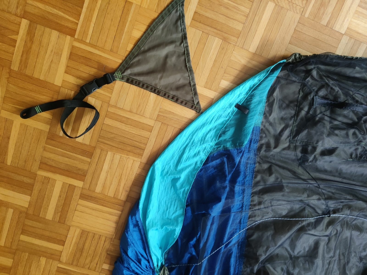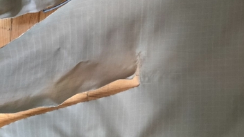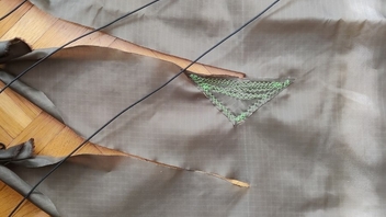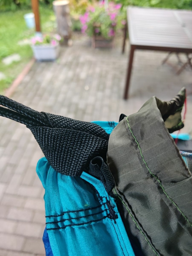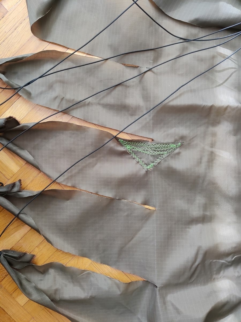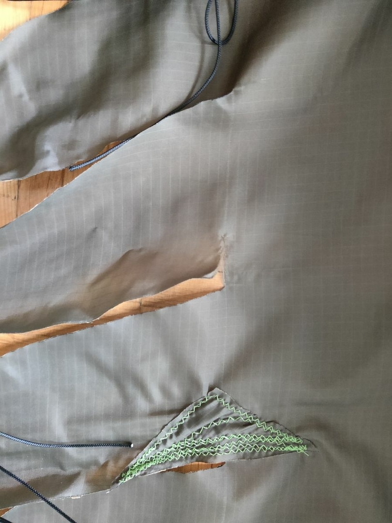 Ja das wird schon. Am Stoff kann es durchaus liegen, Es ist der klassische ExTex Hammockstoff, der Riss ist entlang einer Schusslinie. Das heisse Eisen hat sicher auch Sprödigkeiten hinterlassen. Aber den grössten Anteil hatte meine Hand beim Aufstützen.