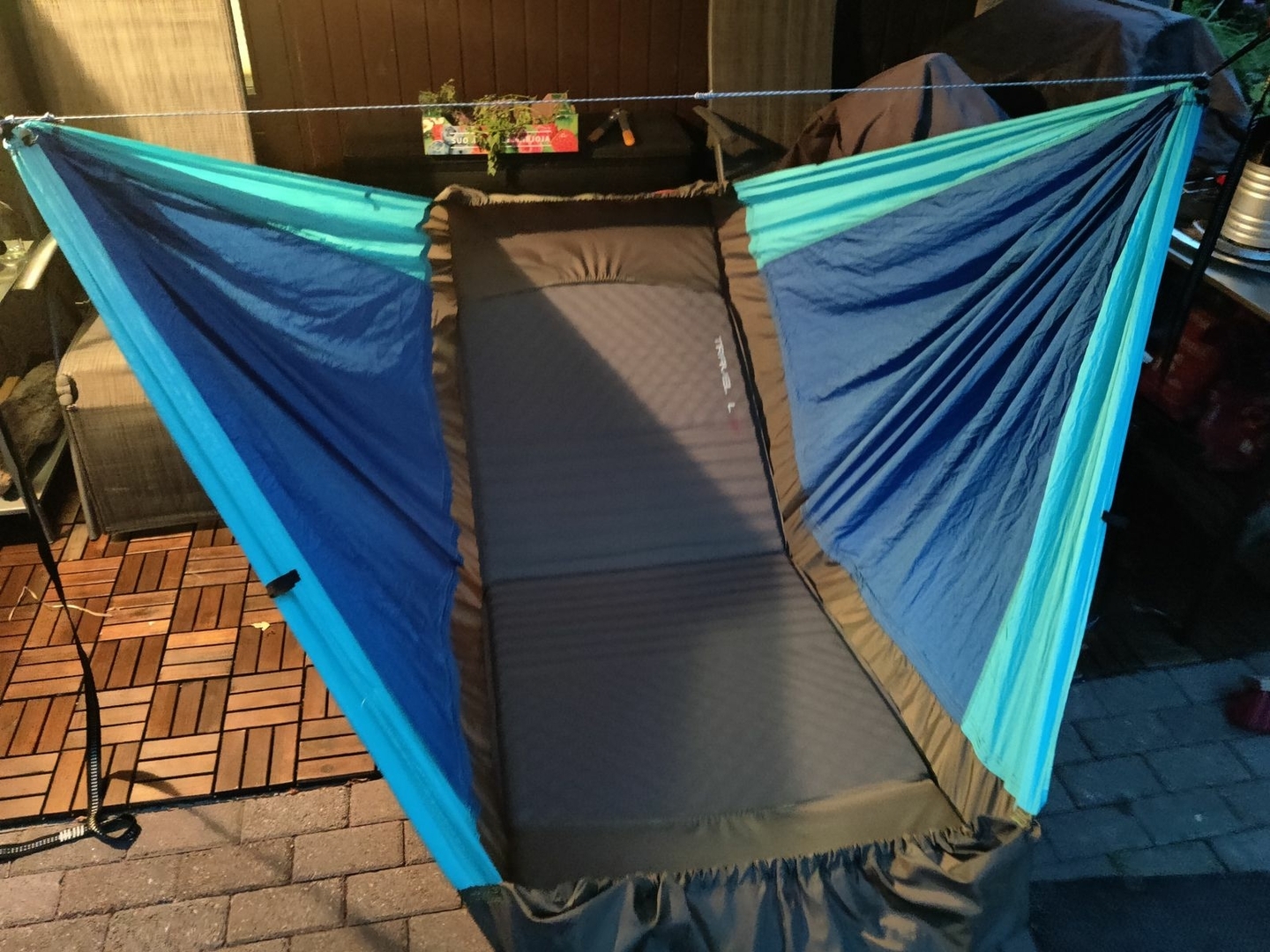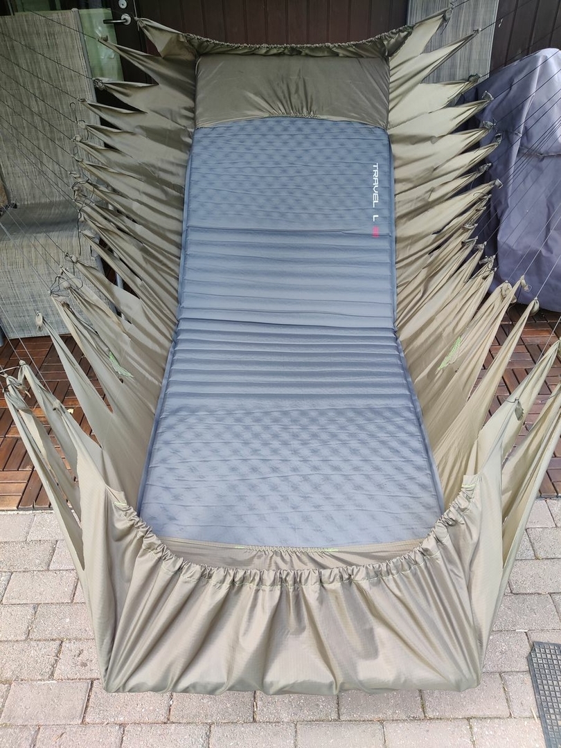 EDIT: Ja geht gut, etwas fummelig die sich einrollende Evazote noch drunter zu bekommen, aber einmal drinnen passt es und bringt mich sicher bis an die Frostgrenze!