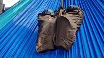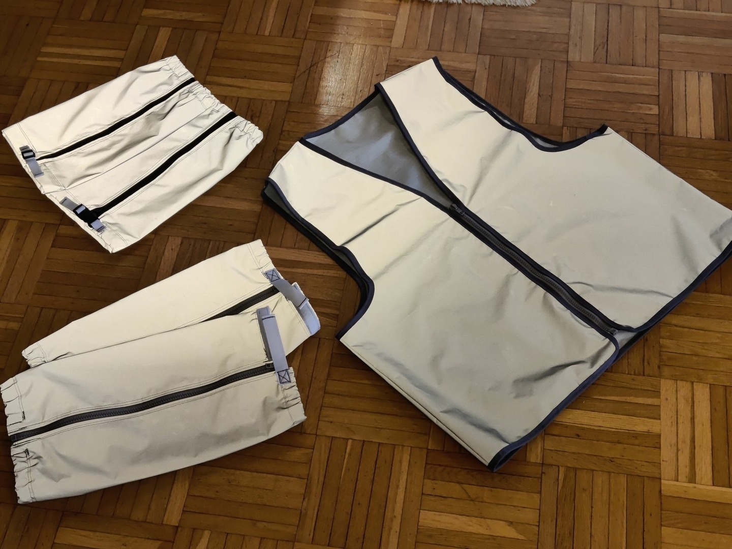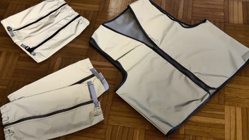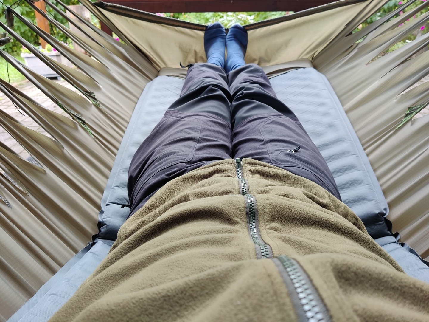 Im Fuss- und Ellbogenbereich werde ich noch steife Schaumstoff-Isolationsplatten einarbeiten, v.a. damit im Sommer die Mücken nicht durchstechen, wo meine Extremitäte anliegen. (Aber das kann ich natürlich schon bei dieser hier vornehmen...)