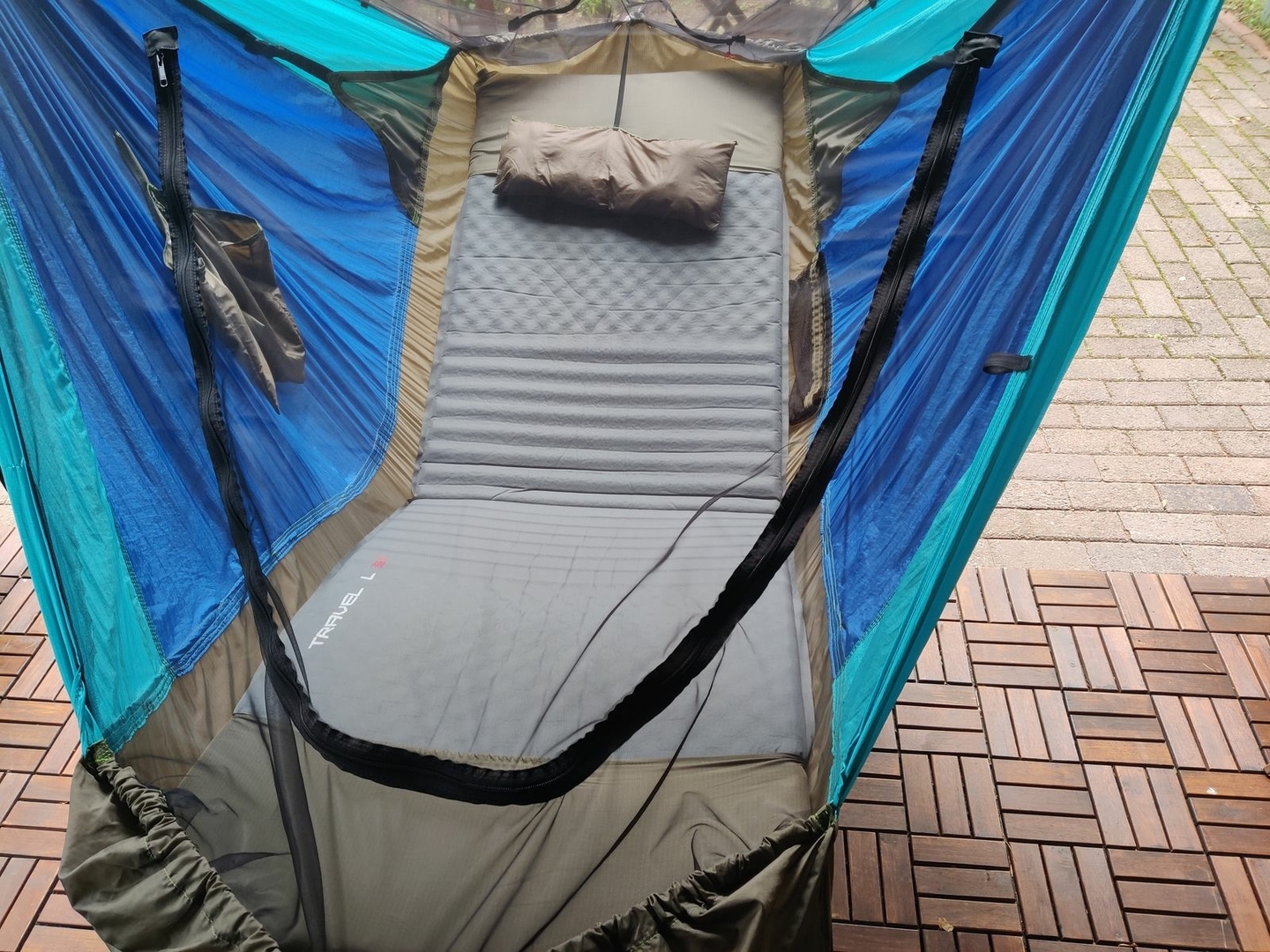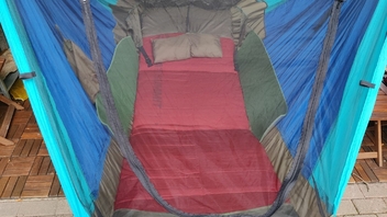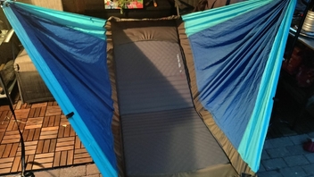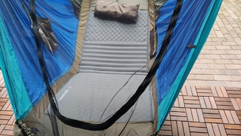 Uiii, mit einer schmalen Aufblasbaren zur Versteifung und einer 9cm Schaumstoff-Gästematratze obendrauf wirds erst richtig zum Himmelbett. (Wenns mal nicht auf Gewicht ankommt.)