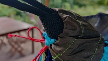 Die Belastung in der Spitze, und der Umstand, dass ich mit dem Tunnelzug praktisch schon fertig aufgestellt war. Ich denke, gewichtsmässig nimmt sich das nicht viel, da Amok ja mit verstärkten Spitzen ausgleicht. Am Ende muss sich die Last bei jeder "Belastung" (Einsteigen etc.) möglichst breit auf den Stoff verteilen, da ist m.M. Gathered End unschlagbar, der Stoff hat bis in die Spitzen hin immer die volle Breite zur Lastaufnahme zur Verfügung, und kann dadurch vglw. dünn sein.