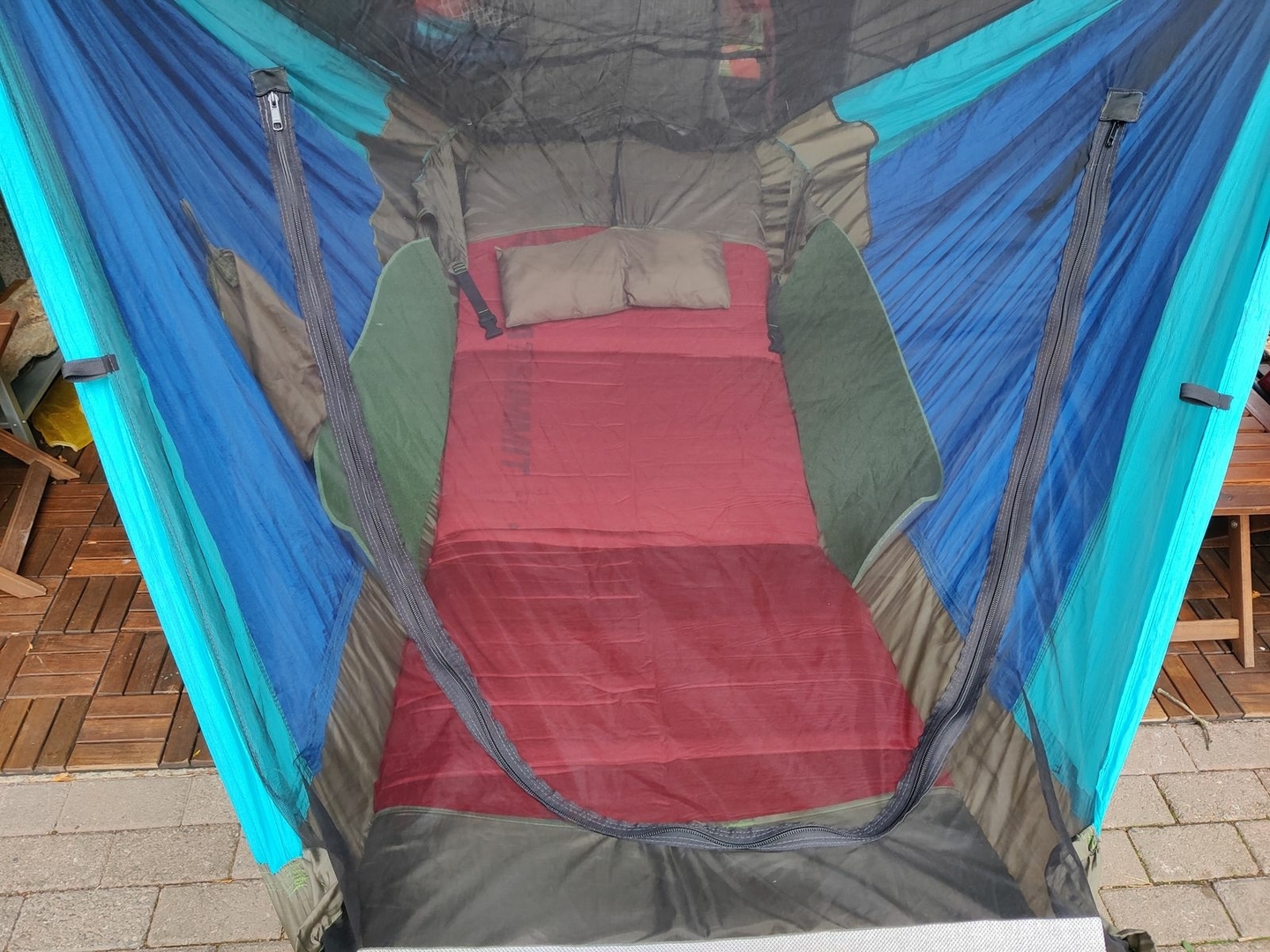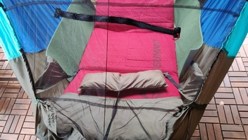Kann nun also auch "richtig flach" liegen, also Kopf und Füsse auf gleicher Höhe. Hab gerade Mittagsschlaf drinnen verbracht, sehr bequem!!!