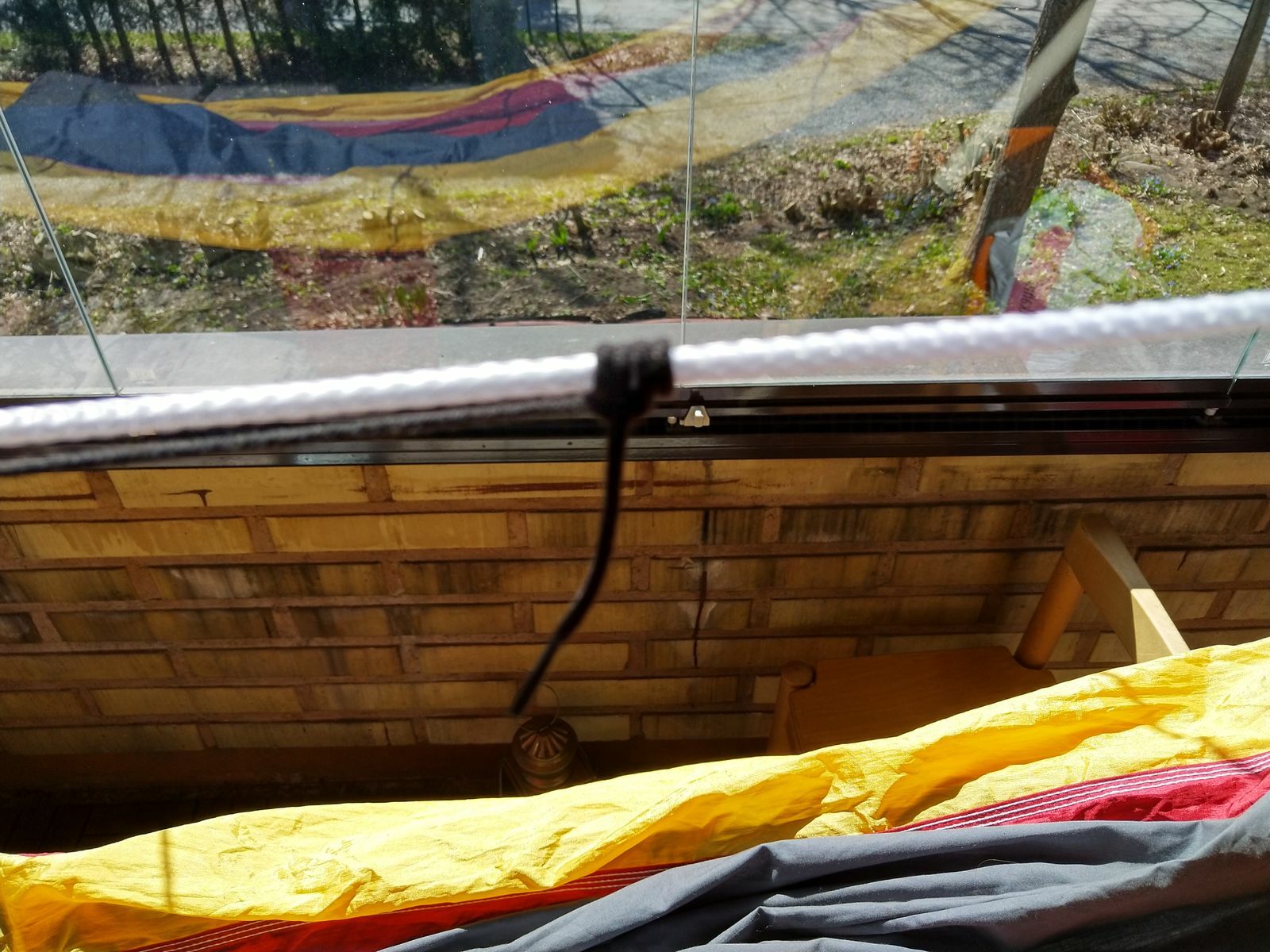 Im Sommer kann ich das Gestell dann auch runter in den Garten verschieben, nur paar Schrauben auf und die Teile separat runtergetragen. (Wir haben irgendwie nicht die richtigen Bäume bei uns...)