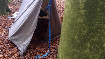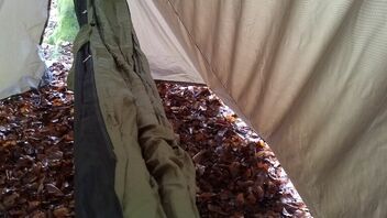 Da Motte auch etwas Gepäck transportieren kann, habe ich bei Amazon ein Hundezelt ( Iglu) 70*80*110cm = 700 g bestellt. Das Zelt + Futter für eine halbe Woche kann sie selber tragen. Somit habe ich schon einen Sicht - und Wetterschutz für sie. Die Idee mit dem angenähten Moskitonetz und ohne Boden gefällt mir. Letzten Herbst habe ich unter Tarp, ohne Hängematte, bei Sturm übernachtet. Der Wind der unter dem Tarp durchblies war sehr unangenehm. Vlt könnte man eine Bahn (Seitenlänge) aus Tarpmaterial mit Klettband ans Tarp heften . So könnte man sich bei kalte, windige Nächte schützen ansonsten bleibt der Streifen zu Hause.