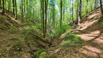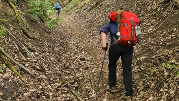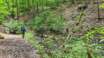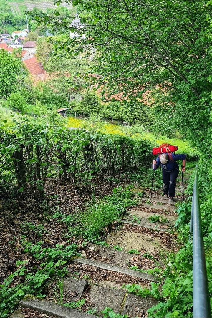 Die vierte Etappe unserer 5-tägigen Trekkingtour durch den Steigerwald war definitiv die Königsetappe! Nicht nur wegen der Länge oder der Höhenmeter, vielmehr hatte es uns der Schlangenweg angetan: ein kilometerlanger alter Pfad, der sich wie eine Schlange🐍 durch den einsamen Wald um unzählige Taleinschnitte herumschlängelt 🥰 Am Ende des Pfades haben wir uns in Zell am Ebersberg eine Einkehr in die Heckenwirtschaft von Herbert Schamberger gegönnt. Auf dem Weg über den Ebersberg konnten wir anschließend die soeben zugeführten Kalorien wieder verbrennen 😉