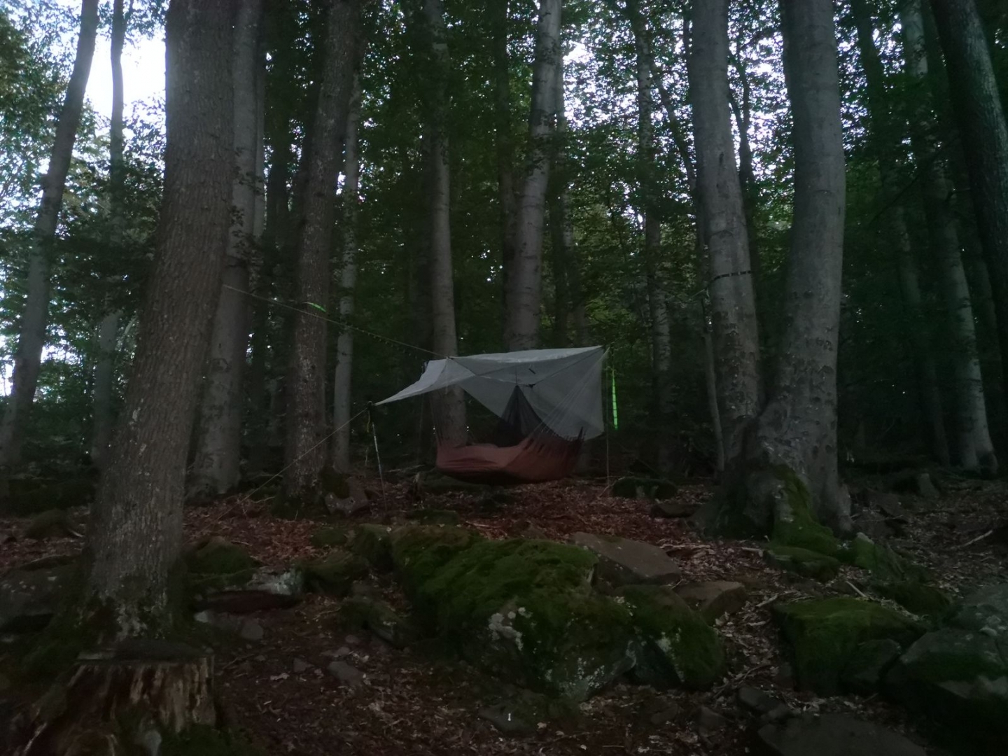 Also habe ich dann angefangen mich mit dem Thema Hängematte zu beschäftigen. Das ging ein Jahr lang bis ich mal auf einen Bushcraft treffen mich in die ein oder andere Hängematte gelegt hatte. Was soll ich sagen meine Zweifel, ob eine Hängematte das richtige ist, waren schlagartig beseitigt! Jetzt musste nur noch geklärt werden, welches System zu meinen Aktivitäten passt. Hilfe bekam ich aus dem BCG Forum und natürlich habe ich auch hier im Hängematten Forum mitgelesen. Noch ein paar Emails und Telefonate mit Ulrich von Cross Hammock und mein Set Up stand.Erst mal hab ich ein paar Nächte auf meiner Terrasse verbracht um alles zu Testen und zu verstehen und dann ging ist es auch auf der ersten Touren. Jetzt hat mich der Hängematte Virus so richtig im Griff.