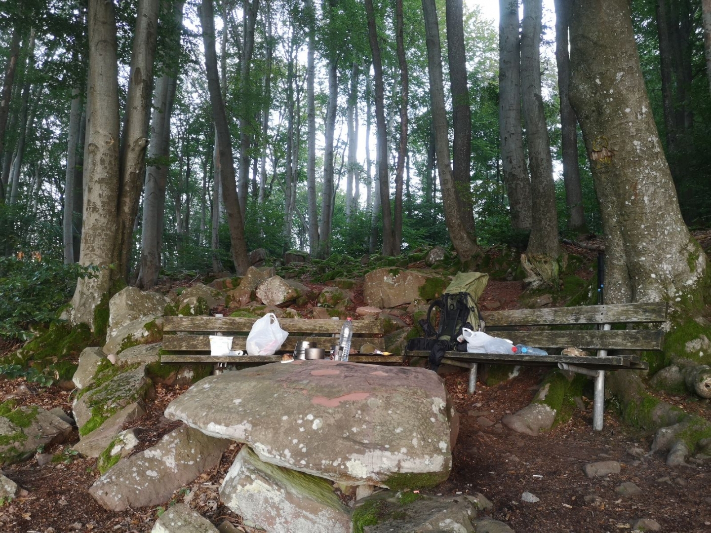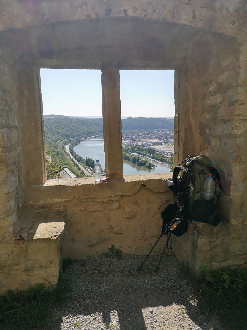 Hier habe ich Wasser aufgefüllt und bin weitergelaufen bis zum Goetheblick. Der Goetheblick ist ein Aussichtspunkt oberhalb von Neckarsteinach.Platt und gute Nacht...