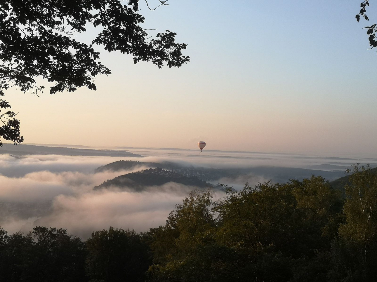 Am Morgen hatte ich ein unglaubliches Schauspiel bei Müsli und Kaffee. Als ich in das Tal starte, stieß ein Heißluftballon durch die Nebelbänke.