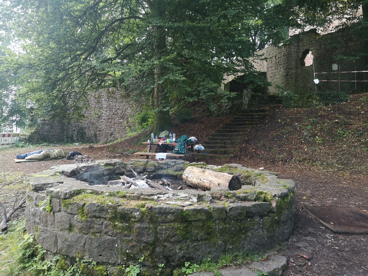 Angekommen an der Burgruine Stolzeneck wurde das Nachtlager im Burghof aufgeschlagen und Feuer entfacht. Ich liebe es.... gute Nacht...