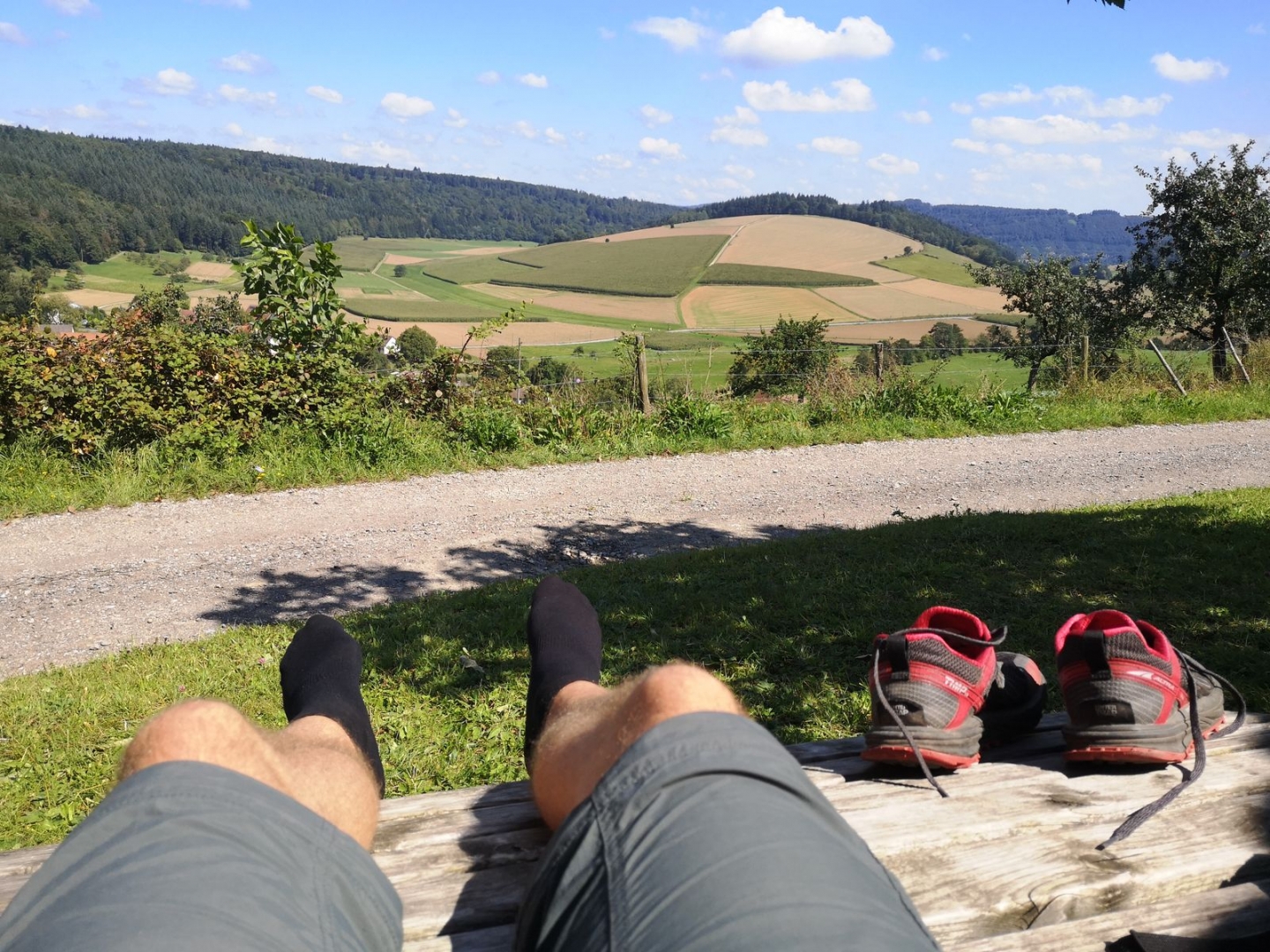 Pause an der alten Neckarschleife. Tolle Aussicht mit langweiligen Wegen.