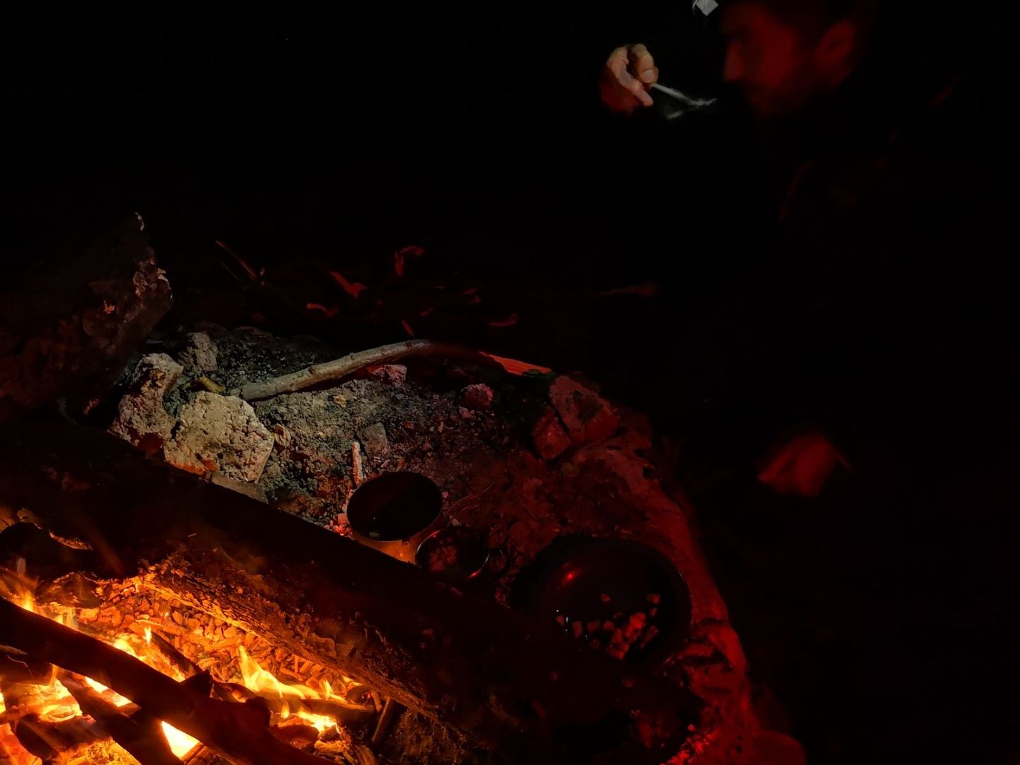 Die Feuerstelle mit Studenten beim Cowboycamping.