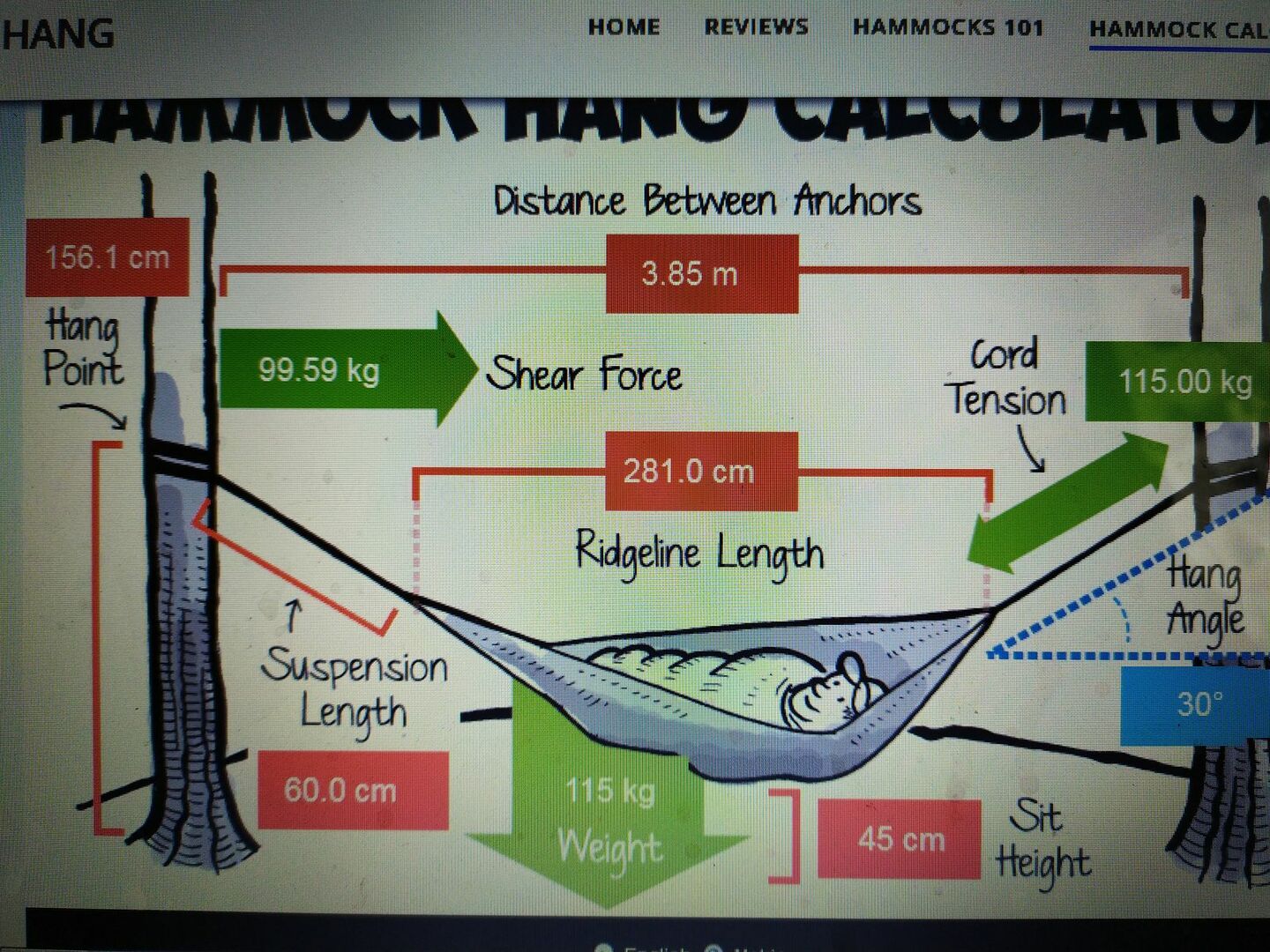 für die Aufhängung in der Wohnung per 50cm Airlineschienen nahm ich mir den bekannten Hängemattenrechner zu Hilfe.