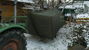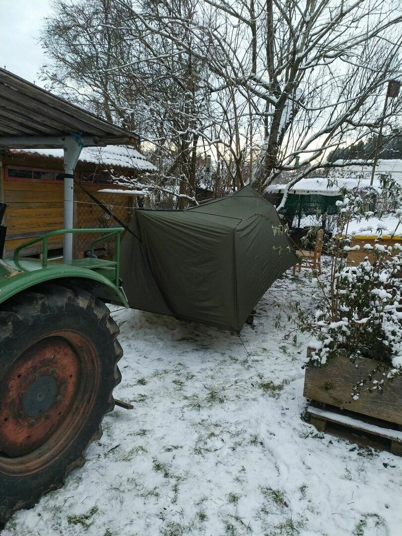 Ich suche ein Tarp ca. 4m x 4m unter den zwei Hänger (am selben Baum) Platz haben.