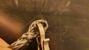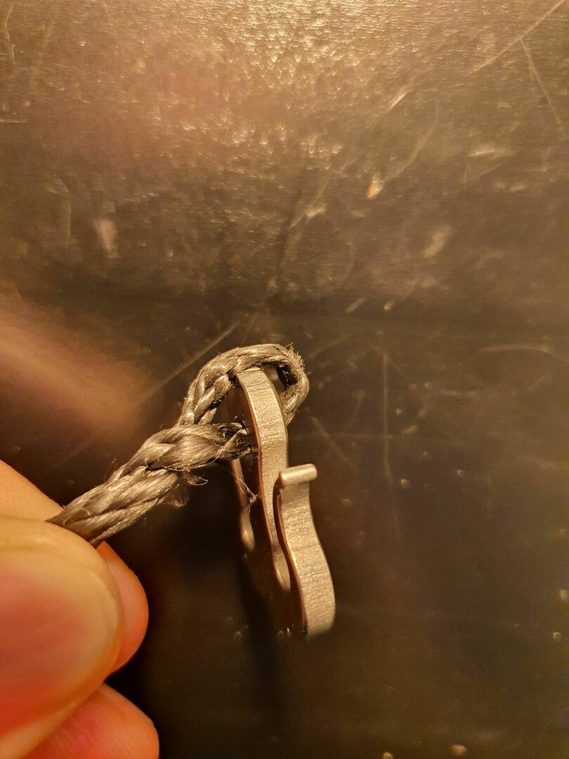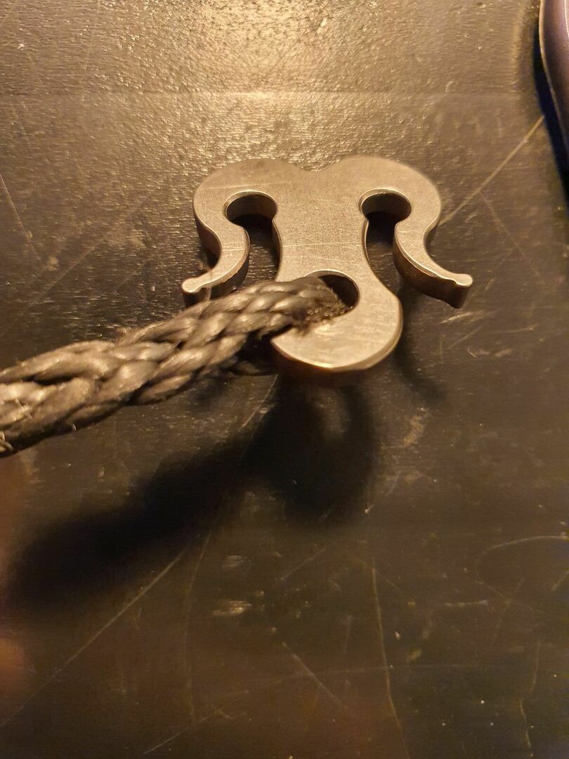So was hätte ich auch gedacht. Und die Haken sind eigentlich auch nicht scharf an den Kanten der Öse. Leider ist das kurze Stück im Wald geblieben, weshalb ich davon kein Foto mehr machen kann, aber mir ist aufgefallen, dass die andere Seite bei genauerem Hinsehen auch leichte Verschleißerscheinungen aufweist (siehe Fotos). Habe ich da am Ende doch was falsch gemacht beim Anbringen des Hooks?