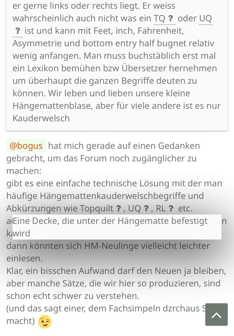 Das ganze gilt aber ohnehin nur, wenn ich eine ausreichend dicke Gummikordel nehme, die nicht sowieso beim Abspannen auf Anschlag ist. Mit "auf Anschlag" meine ich, dass nicht mehr der Gummikern die Kraft aufnimmt, sondern der gewebte Mantel. Meine 2mm Kordel ist dafür in Guylines definitiv zu schwach. 3mm geht dafür so naja. .