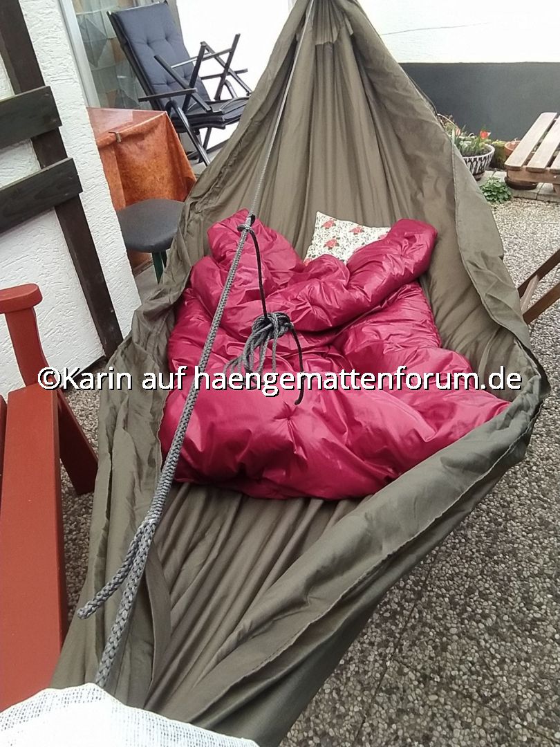 Nach so ungefähr einem Jahr Anlauf war am Samstag die selbst genähte Hängematte nebst Isolierung doch mal fertig und hatte eine Superpremiere bei dem schönen Wetter am Sonntag.