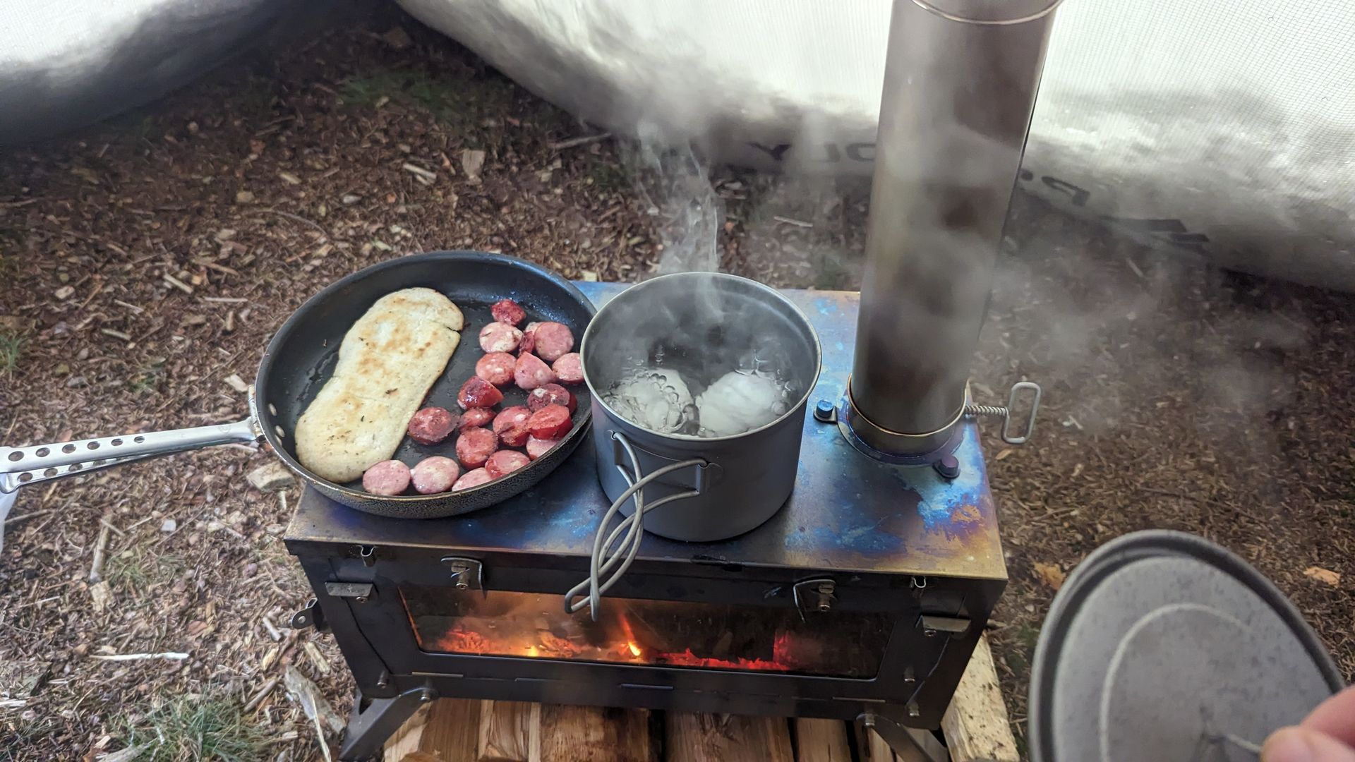 Cross Hammock bei dem Zelt handelt es sich um das Hussar von Pomoly. Ofen ist der Ti 0,6. Dabei war gerade die einfache Montage via Klappmechanismus und das Glas gesetzt. Klar ist das Zelt nicht aus Dyneema und ultralight, ist für mich aber bei Hot Tent Overnighter nicht von Relevanz, da wir die Stellen besuchen, die wir kennen und maximal eine Stunde Fußweg einplanen. Sonst achte ich auch gerne aufs Gewicht und bin ohne viel Unnötiges unterwegs. Zumal das auch einfach eine Preisfrage ist. Wir haben halt die Sachen bestellt, die wir in Deutschland bekommen haben mit unseren Vorgaben. Auf Import kann man da gut und gerne verzichten.