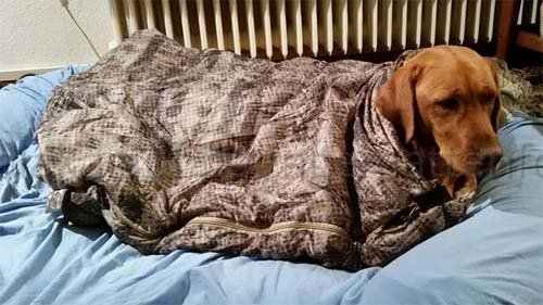 Bereits bei der Abreise freute ich mich wie ein kleines Kind. Mein Hund hat eine Nacht zuvor noch einen Schlafsack verpasst bekommen. Er guckte etwas verdutzt, als wüsste er nicht genau, was auf ihn zukommt.