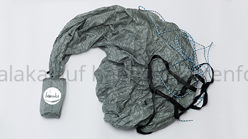 Das Gewicht kann sich durchaus sehen lassen. Inklusive dem kompletten Aufhängungs-System, der Hängematte und dem Beutel wiegt die HM 370g.