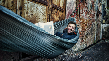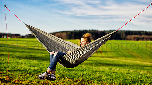 Wie bereits erwähnt liegt sich die Hammock sehr angenehm und passt sich dem Liegenden an, das Nylon-Material hat einen schönen Stretch - nicht zu doll, nicht zu knapp.