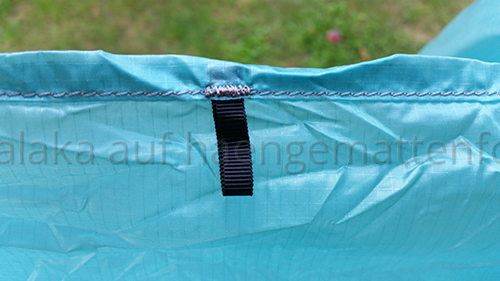 Die Hamaka Hängematte überzeugt nicht nur durch Liegekomfort, sondern auch durch nette kleine Details wie das Logo an den Treehuggers oder extra Abspannpunkten für ein Unterquilt. Außerdem ist die Hängematte wirklich extrem sauber vernäht, hier gibt es nichts zu meckern.