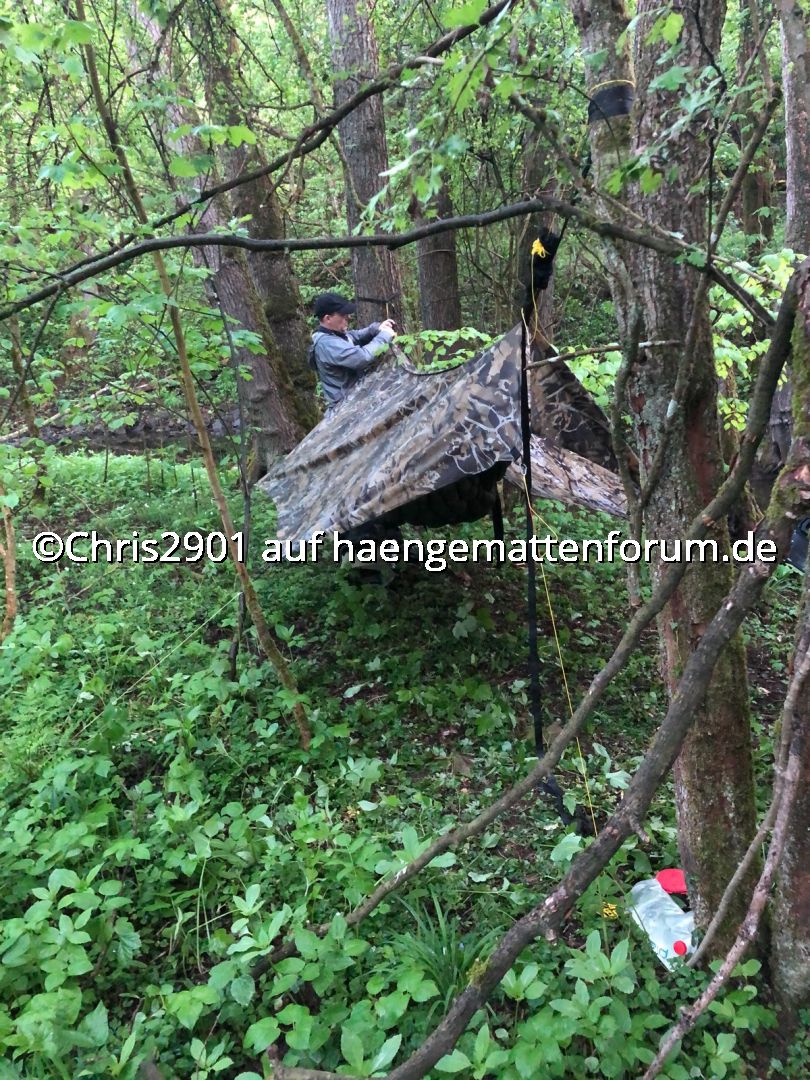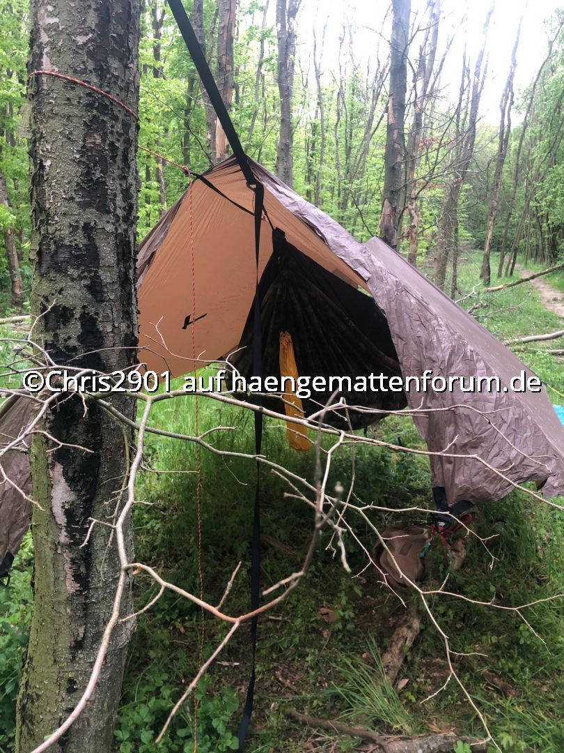 Endlich erster Test der Warbonnet und gleich mal das Tarp verkackt, weil falsch herum: