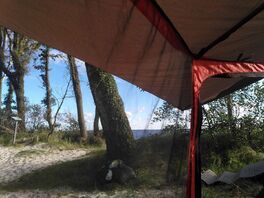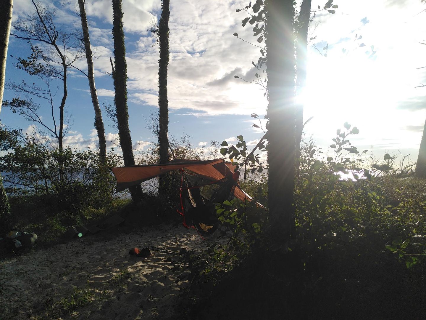 Wir waren in Bornholm - da hat es super hingehauen mit der Hängematte, eigentlich überall Bäume.