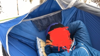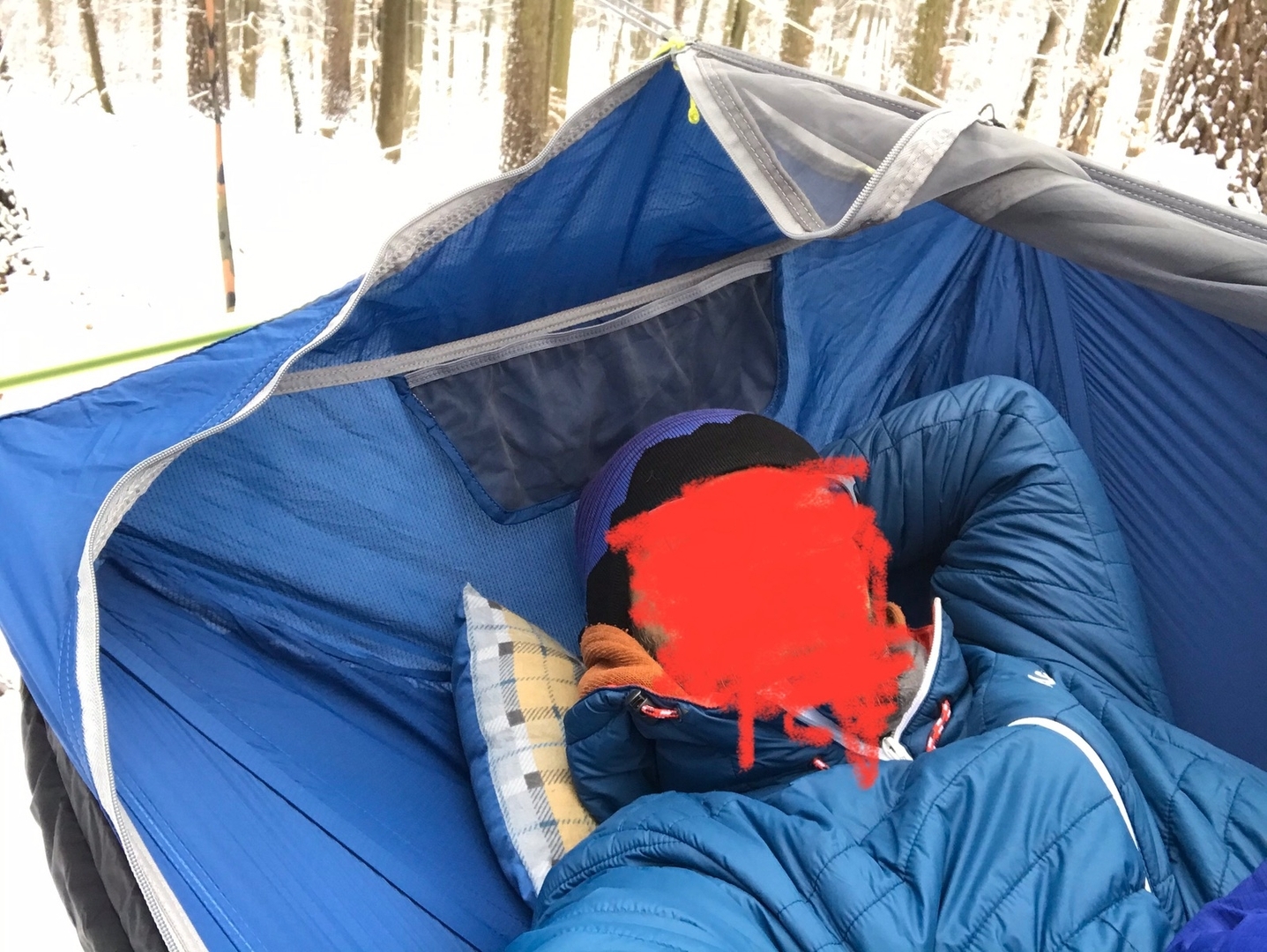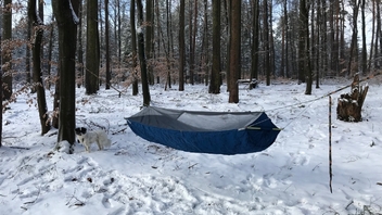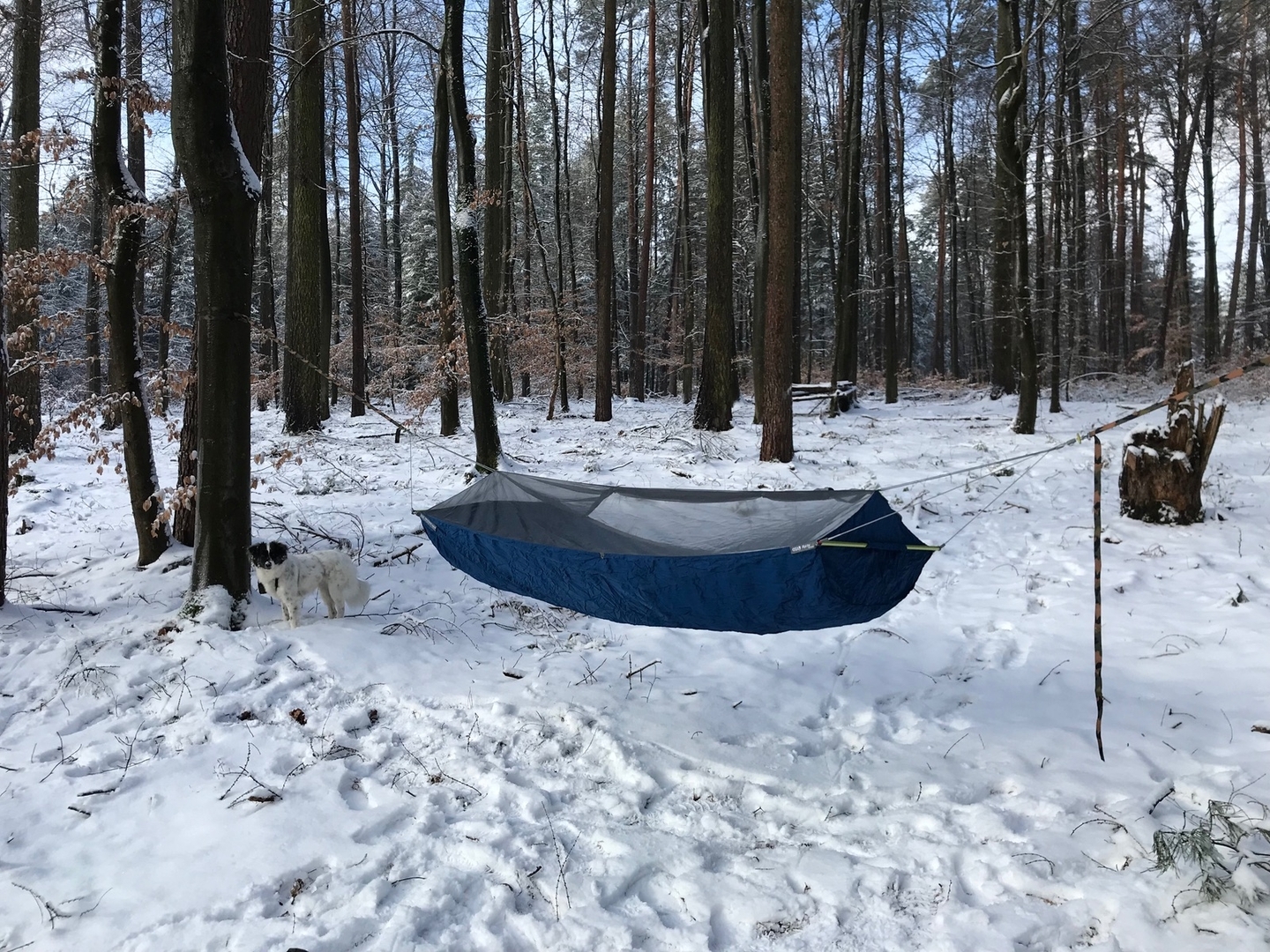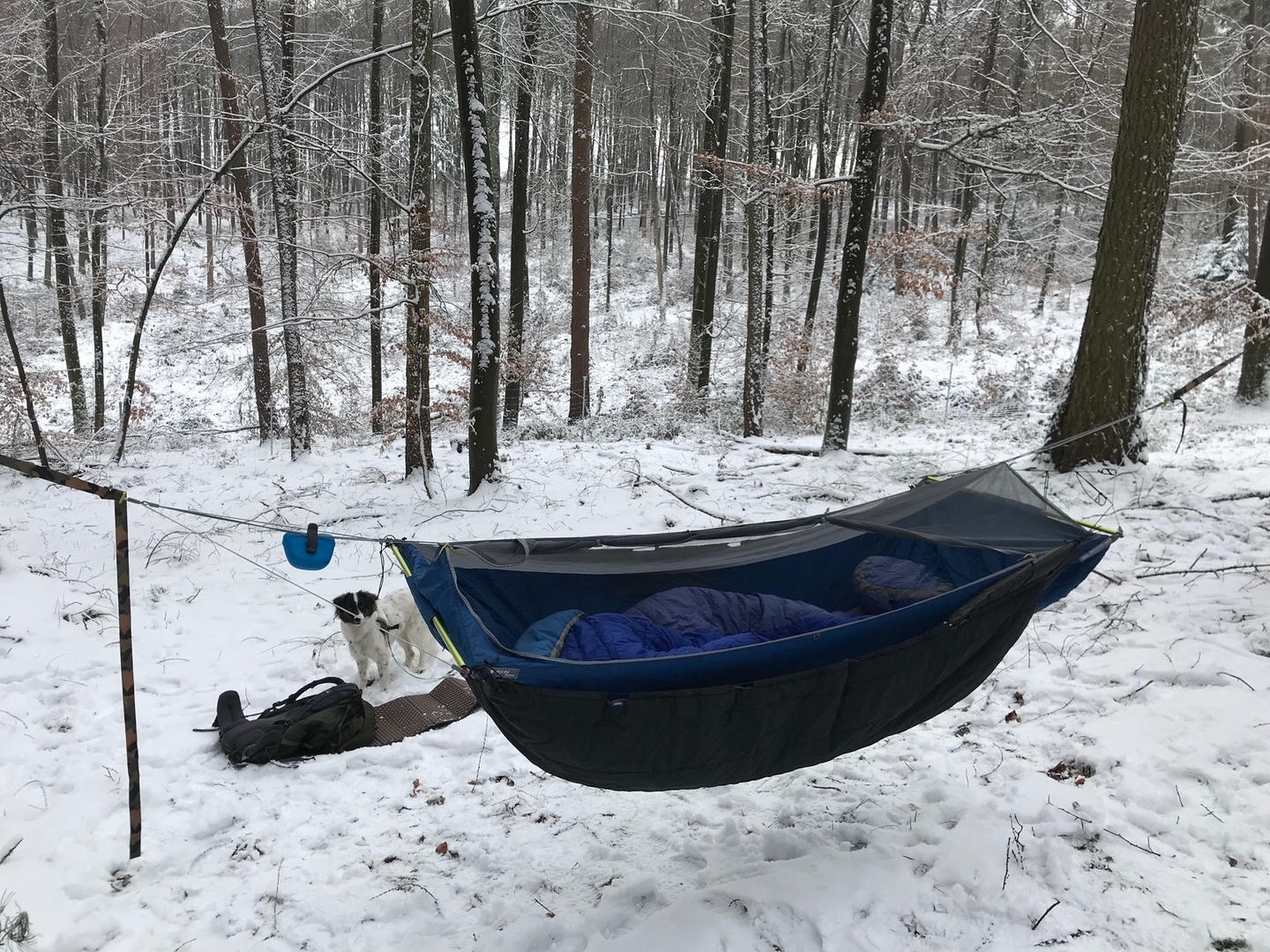 Fotos habe ich letzten Freitag bei ca. -5 bis -3 Grad Celsius gemacht. Mit zwei provisorisch angebrachten mitteldicken Underquilts drunter habe ich mich pudelwohl gefühlt.