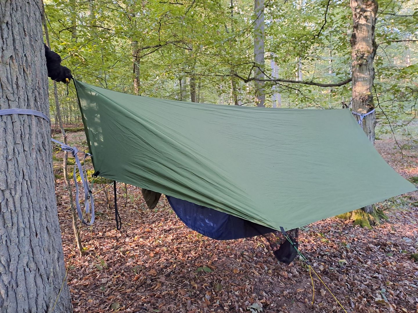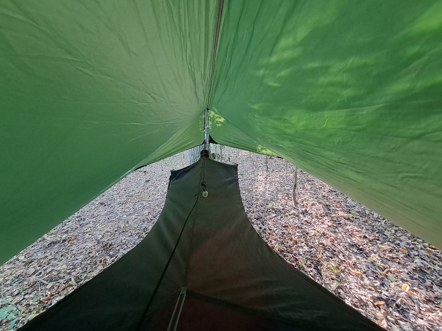 Als Protoyp habe ich mir ein billiges gebrauchtes 3x4m Tatp gekauft und dann im "Warbonnet Style" angepasst. Dann musst du "nur": anzeichnen, schneiden, saumen und neue Abspannpunkte anbringen. Ich habe die Abspannpunkte genau auf die Höhe der Spreizstäbe gesetzt, in meiner Theorie ist das ein guter Punkt für den Beginn der "Türen".