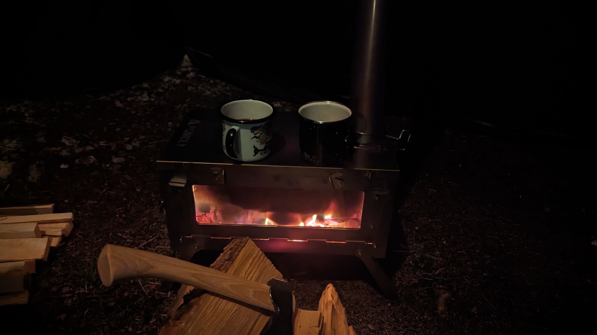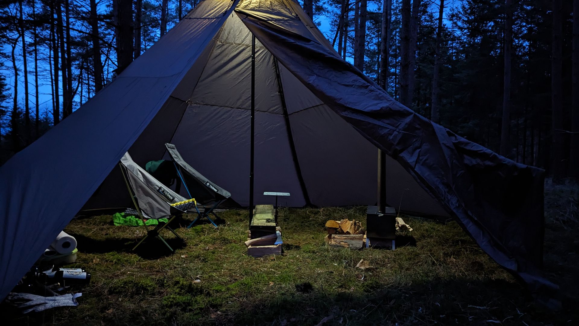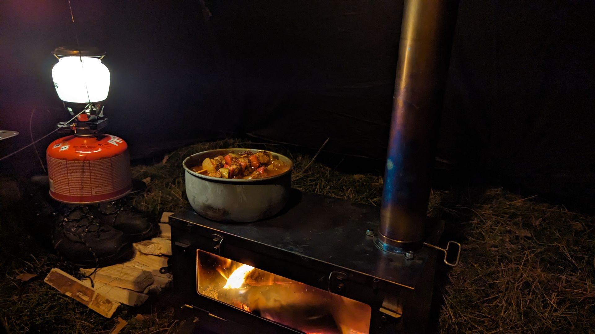Hot Tent Sachen gemacht. Jetzt wird die Bude eingeheizt!