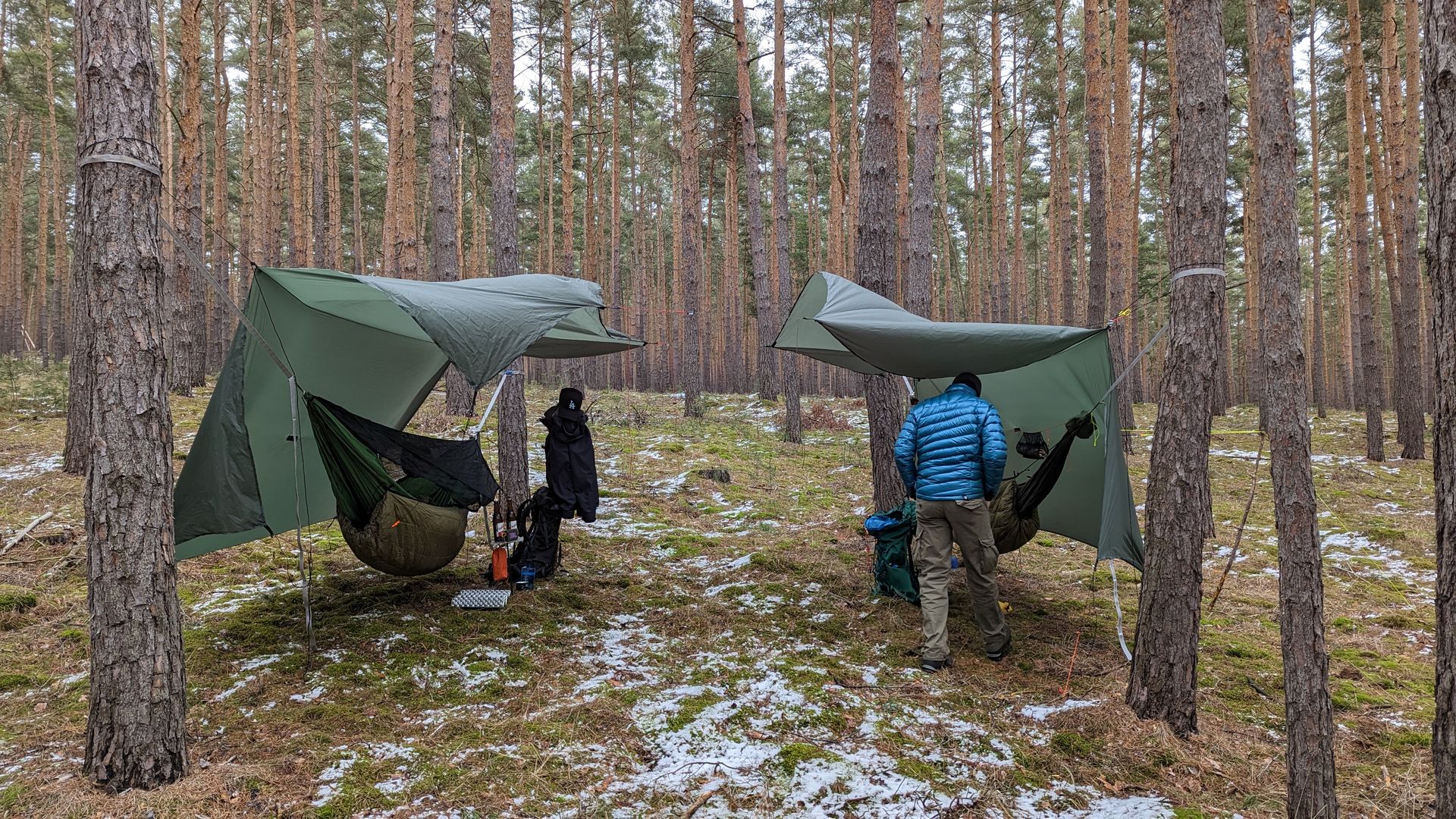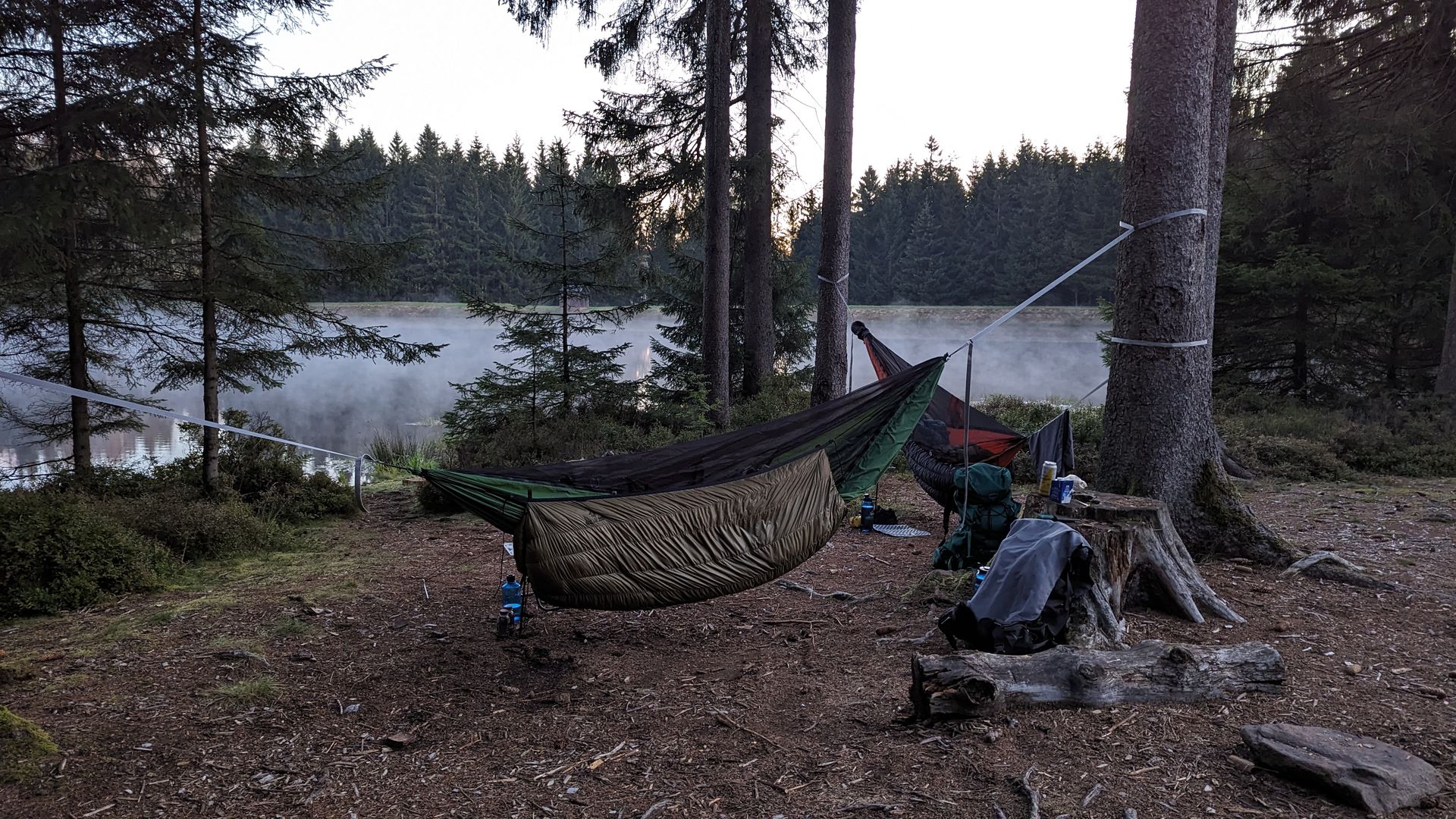 Anfang des Jahres war ich mit der Hängematte in der Sächsischen Schweiz. Das ist aber eher Quatsch meiner Meinung nach. Es gibt kaum Hangmöglichkeiten. Iso ist die bessere Alternative. Außerdem ist man so gleich vor Regen geschützt und braucht kein Tarp.